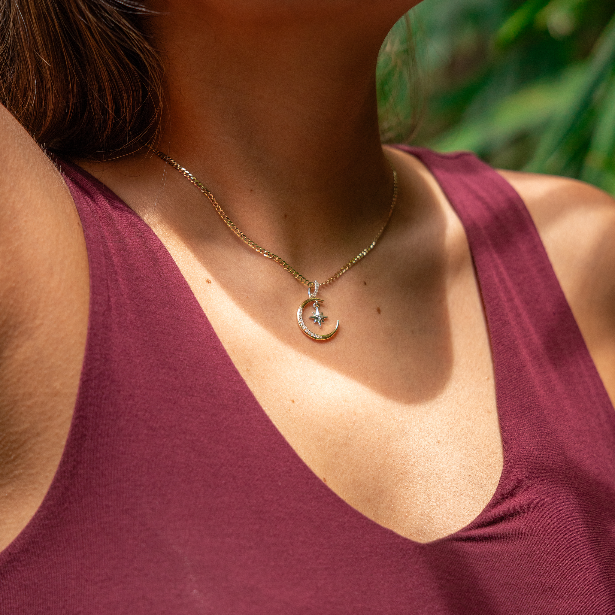 - 14Kホワイトゴールドの星と14Kイエローゴールドの月