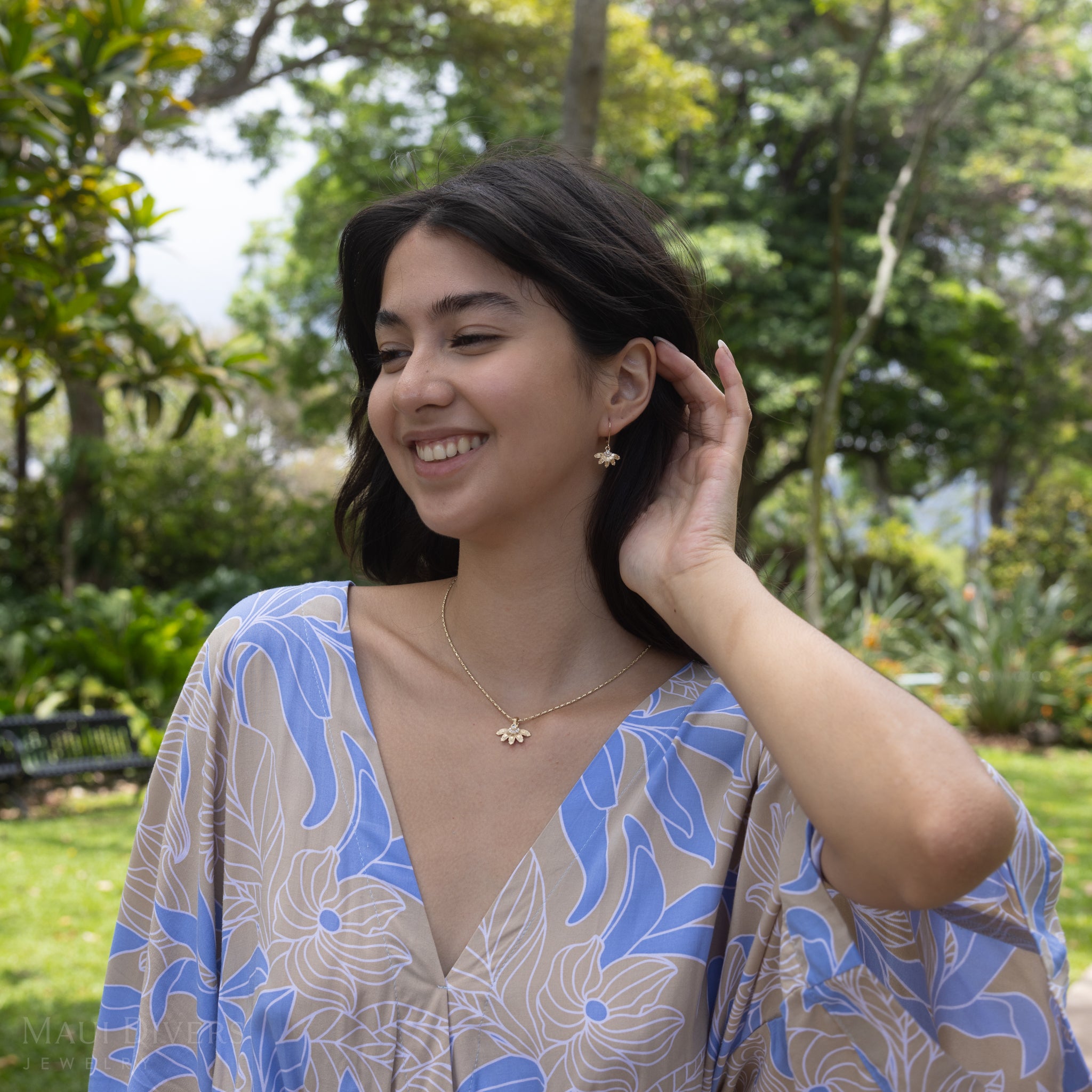 Mountain Naupaka Earrings in Gold with Diamonds - 10mm