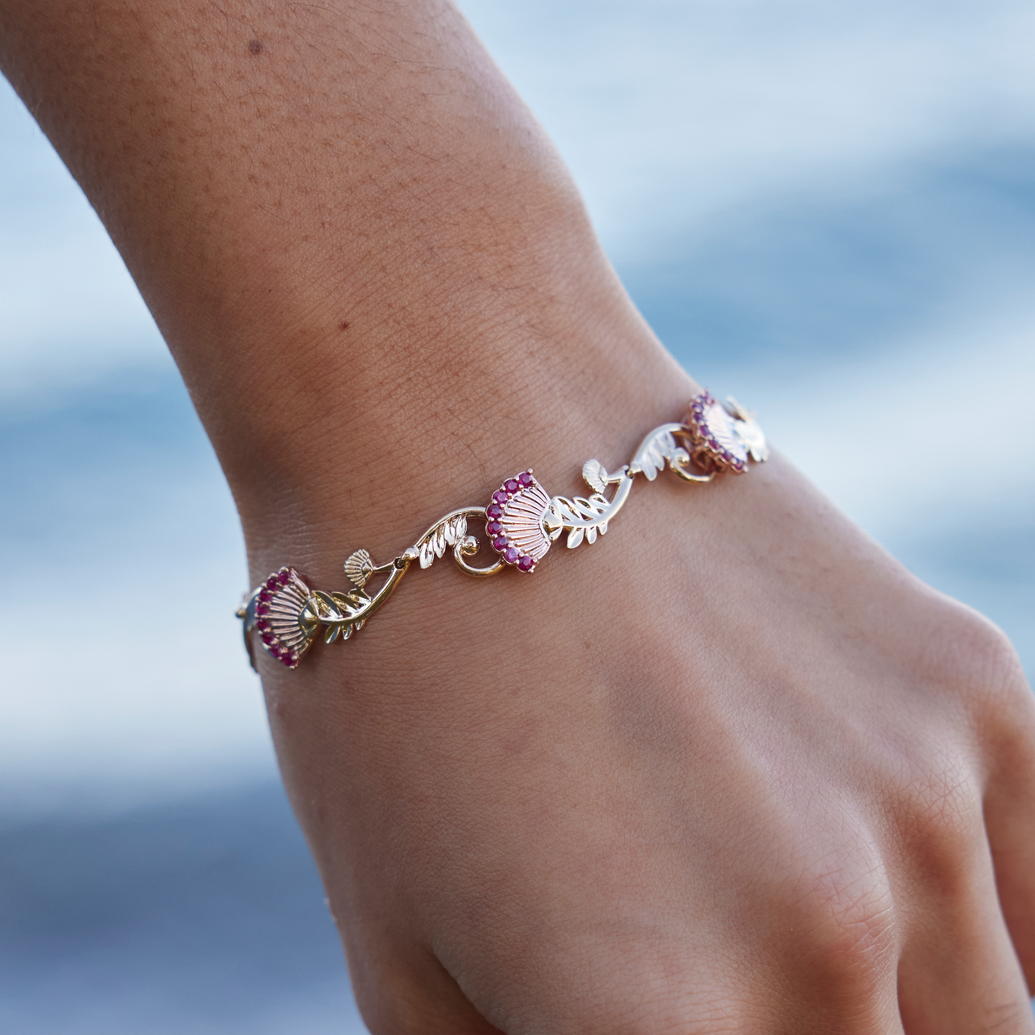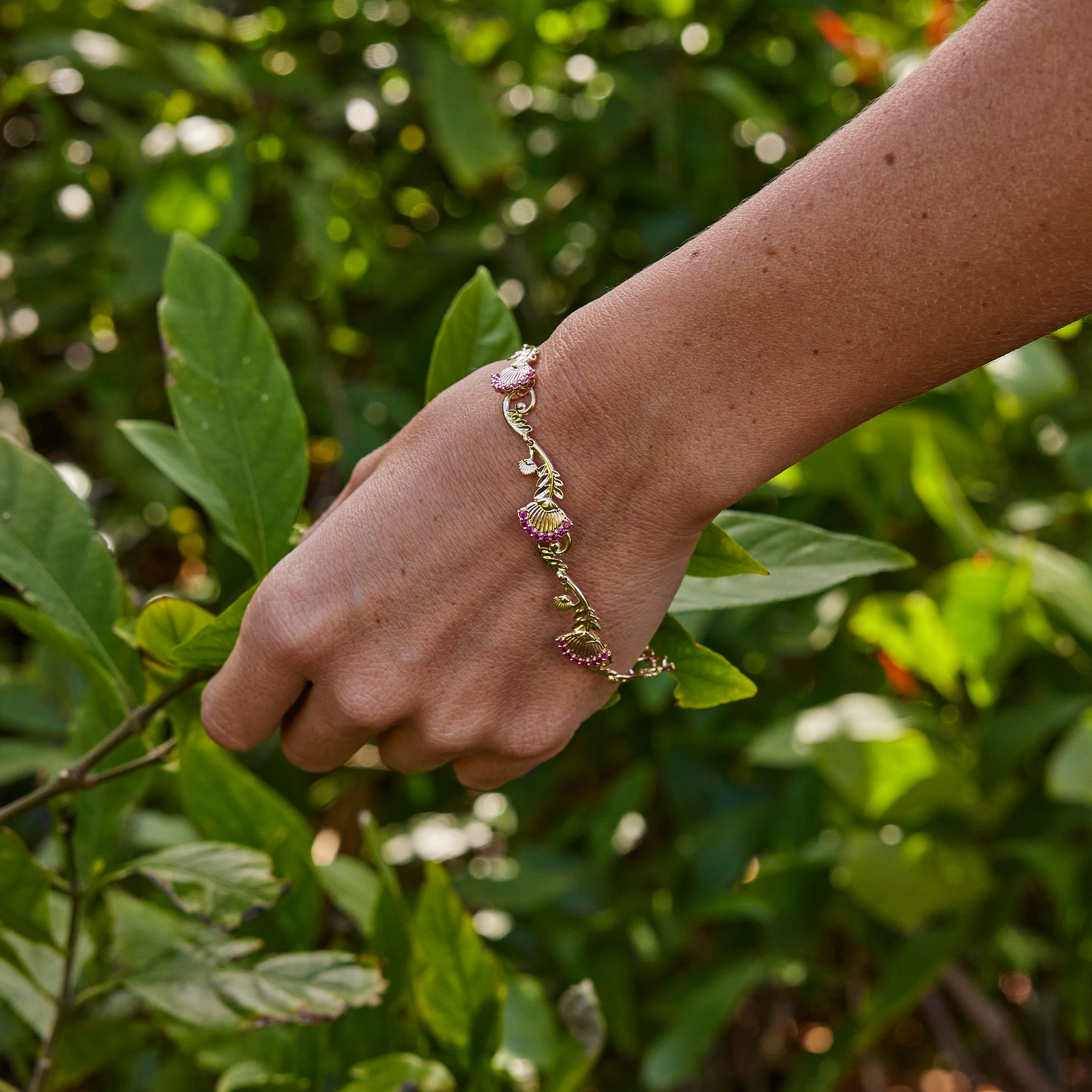 ʻŌhiʻa Lehua ルビー ブレスレット ツートーンゴールド