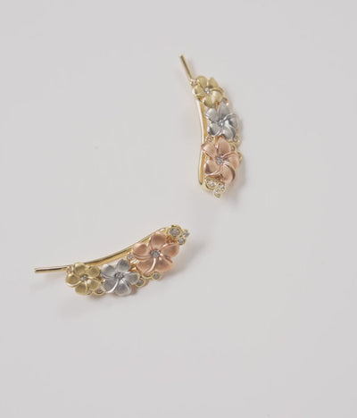 プルメリア ダイヤモンド ピアス トライカラー ゴールド - 20mm