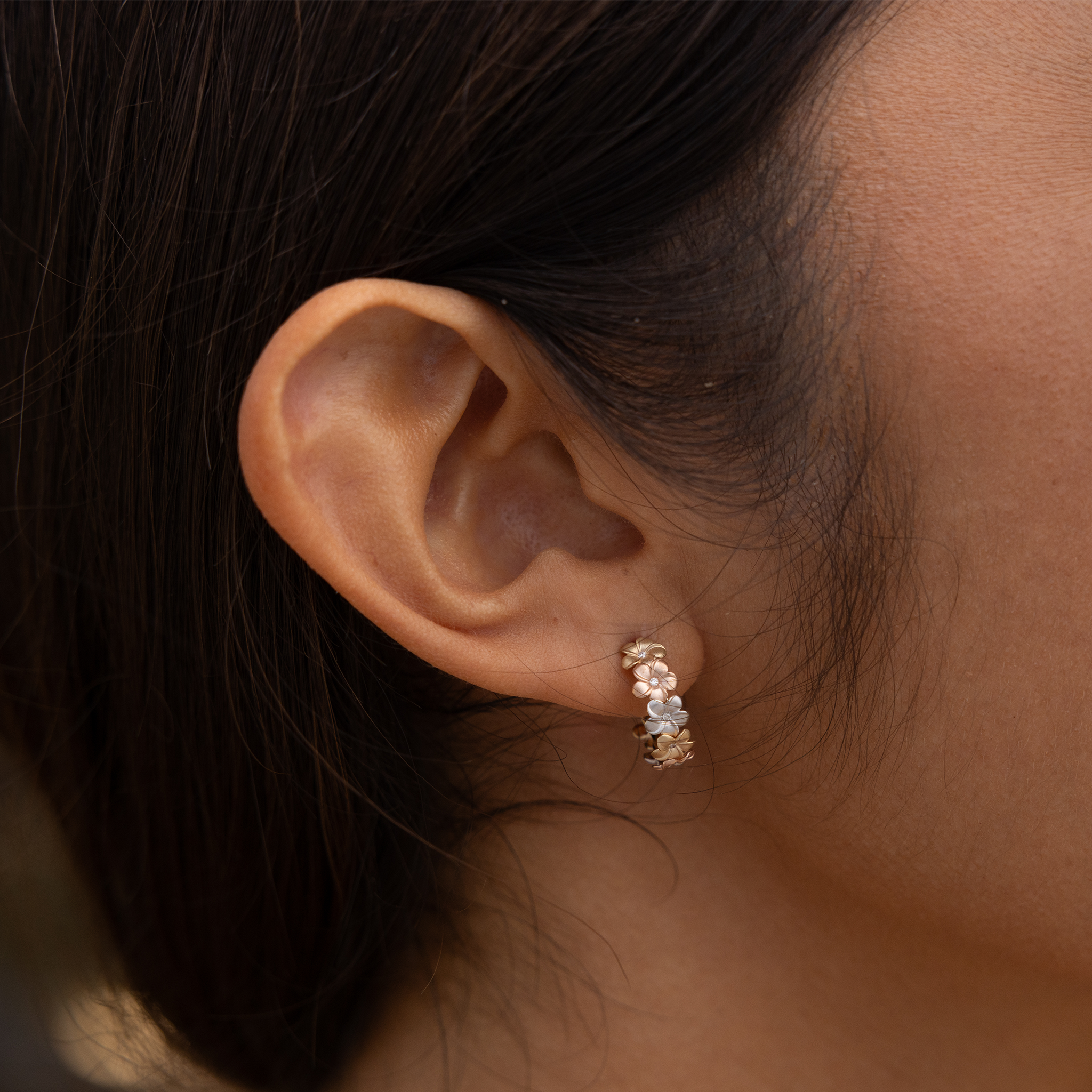 プルメリア フープ イヤリング ダイヤモンド トライカラー ゴールド
