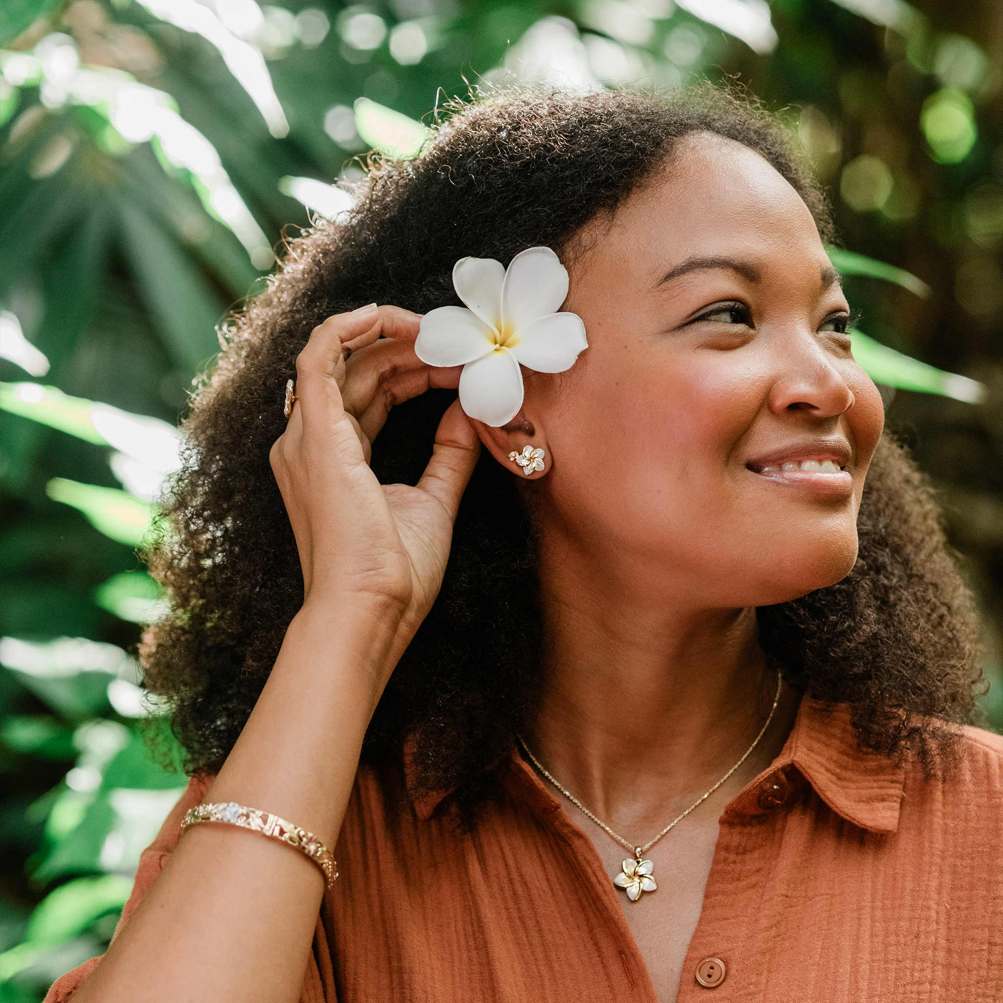 プルメリア ダイヤモンド ピアス ゴールド - 5mm