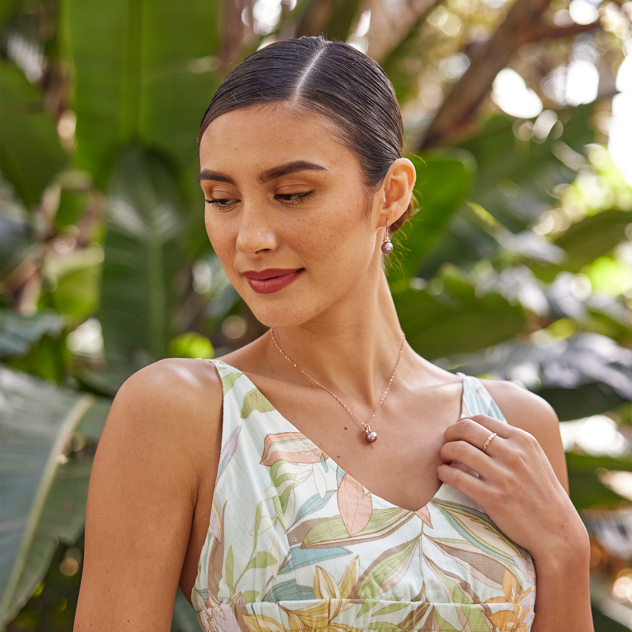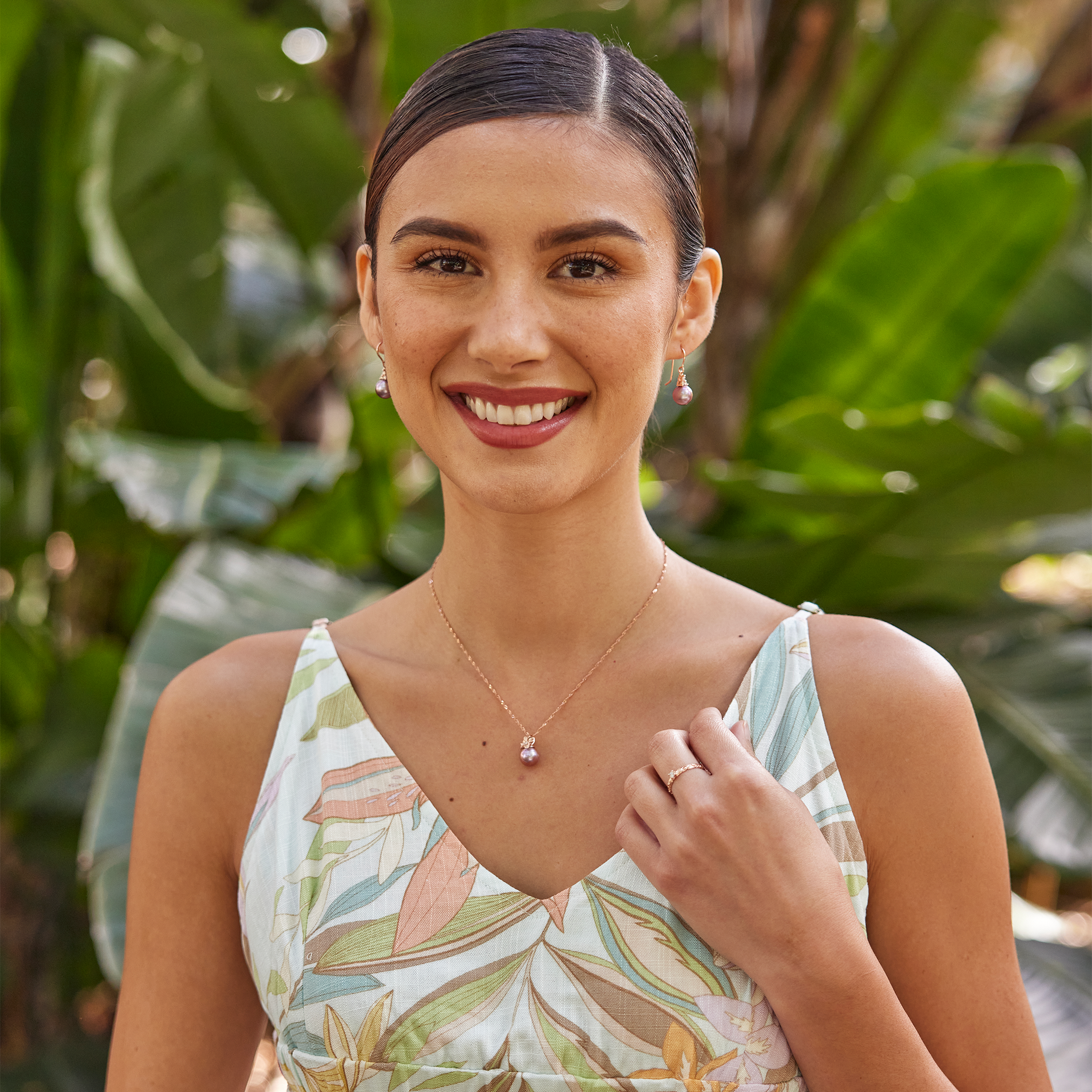 プルメリア ラベンダー 淡水パール ペンダント ダイヤモンド ローズゴールド 9mm