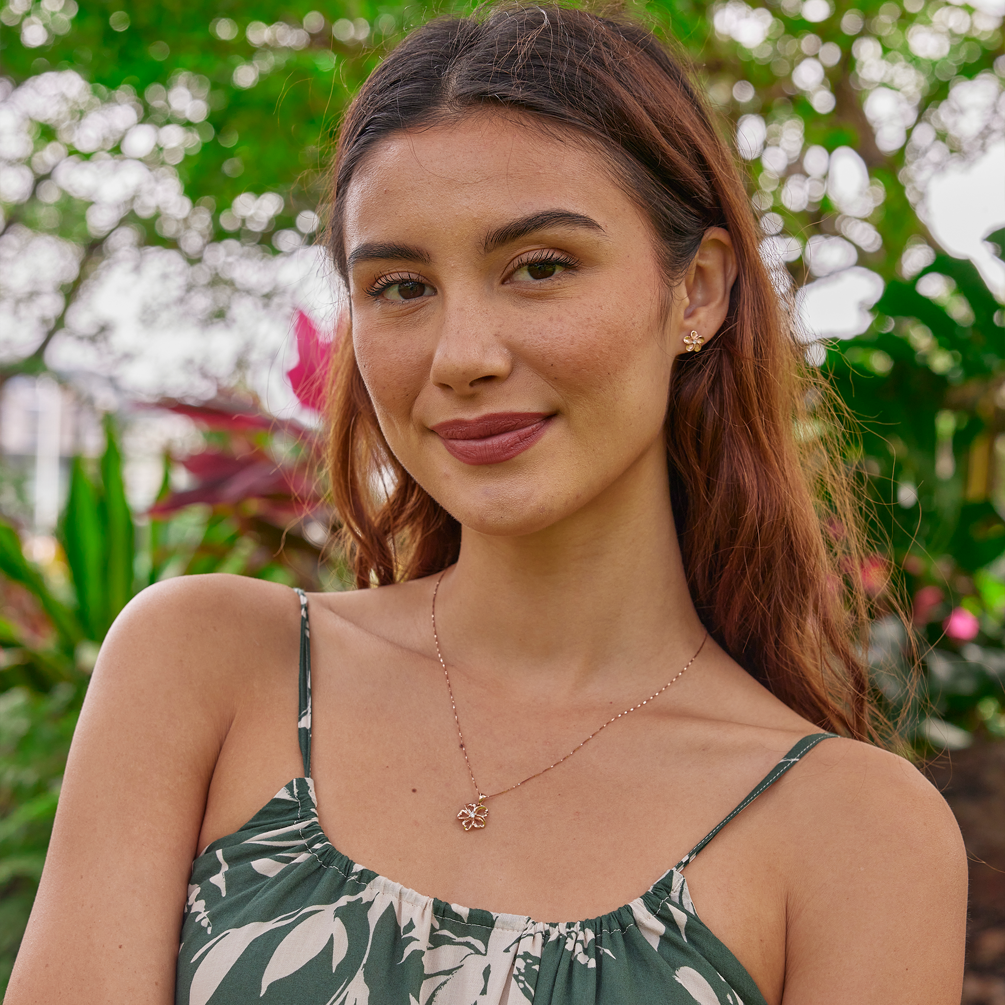 18" Plumeria Pendant Necklace in Rose Gold with Diamond - 14mm