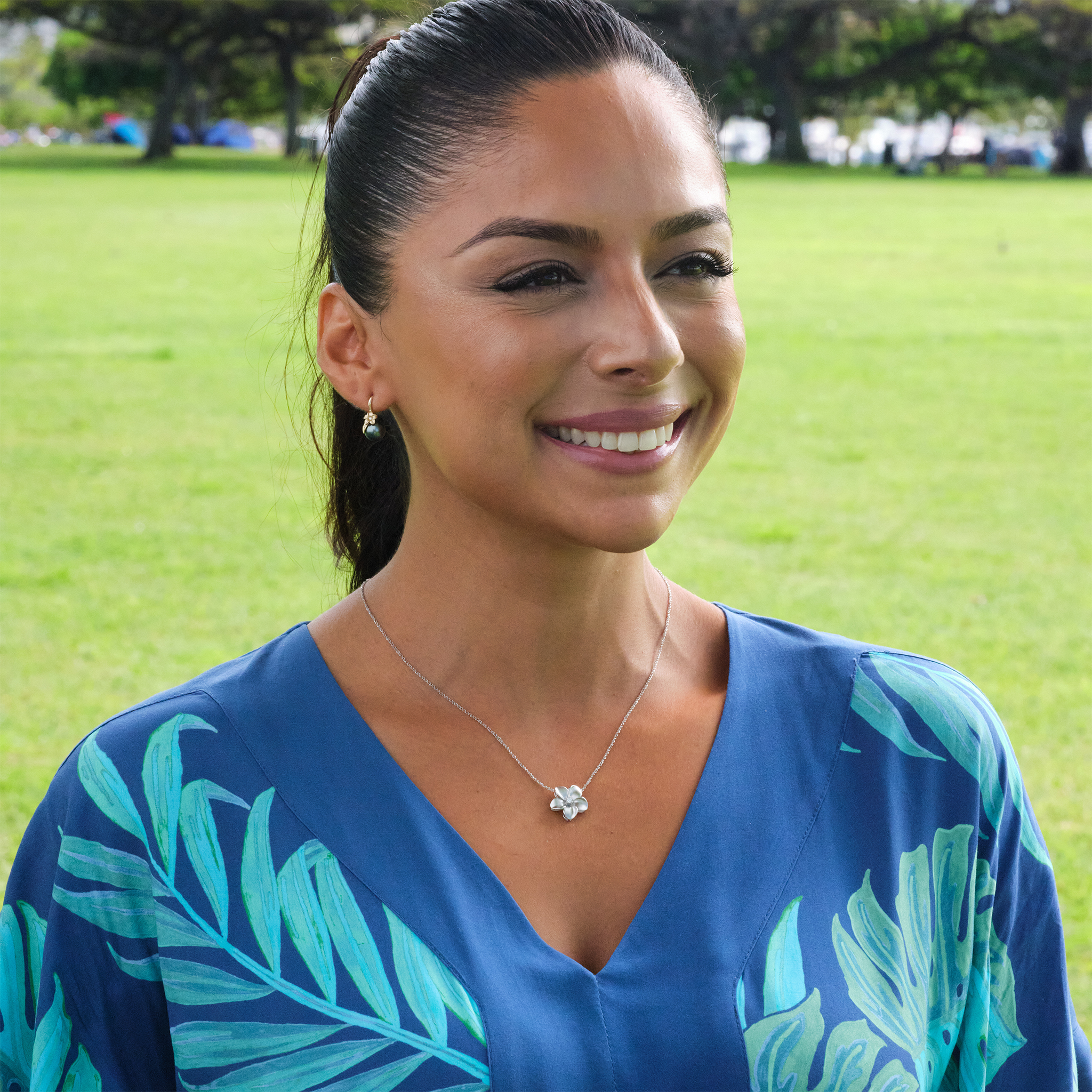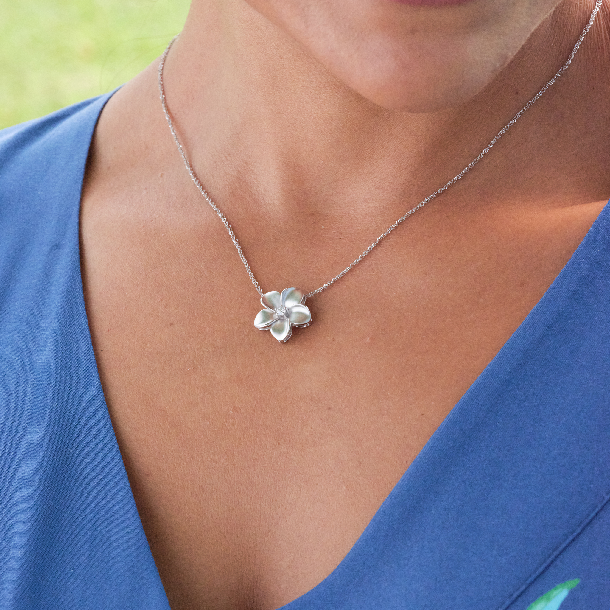 プルメリア ダイヤモンド ホワイトゴールド ペンダント - 16mm