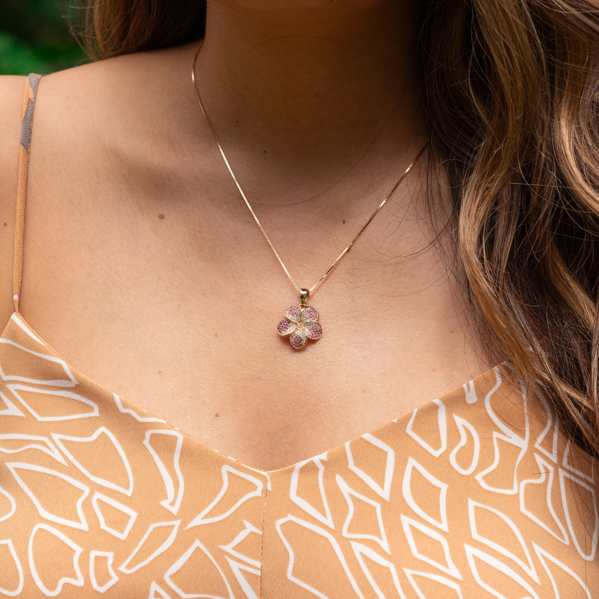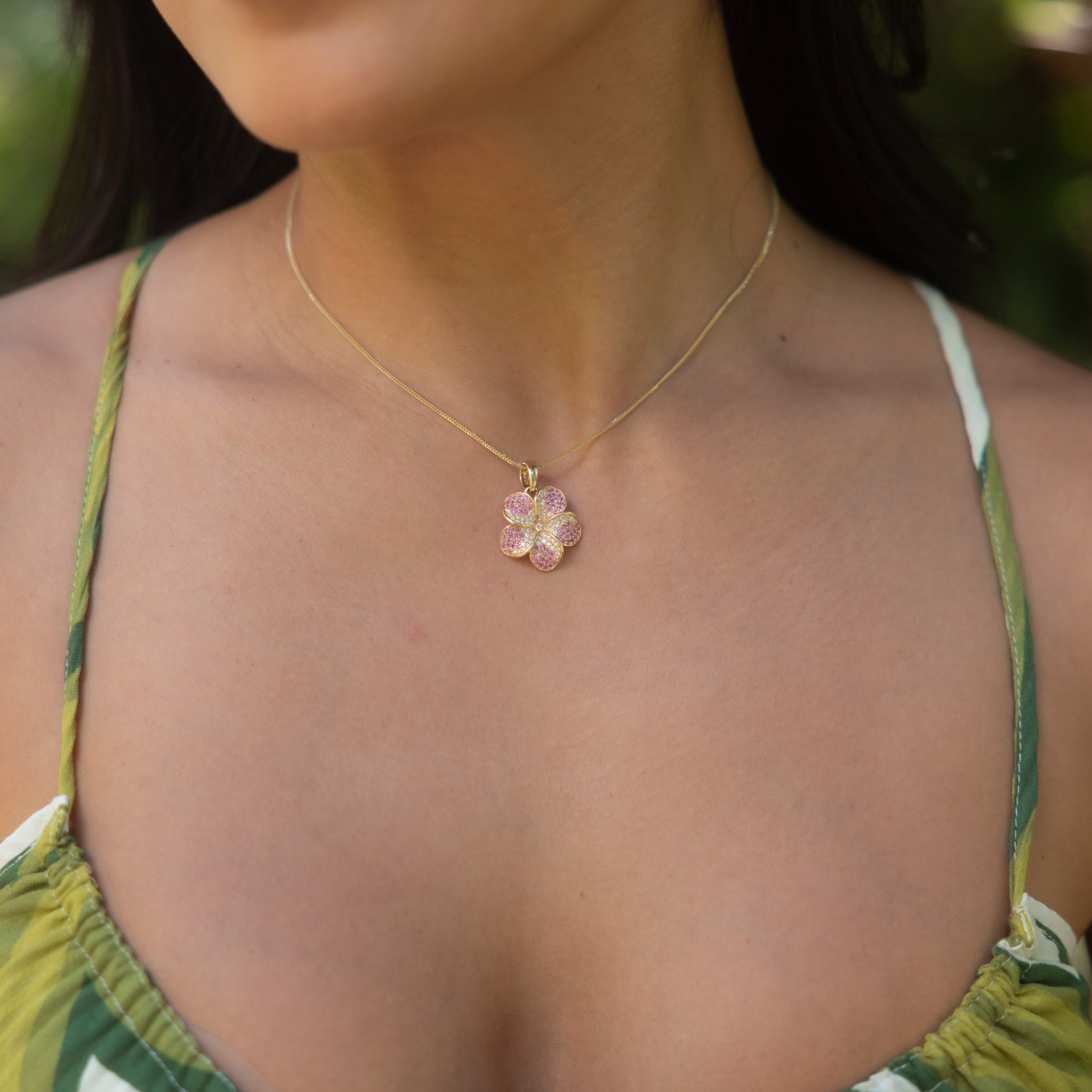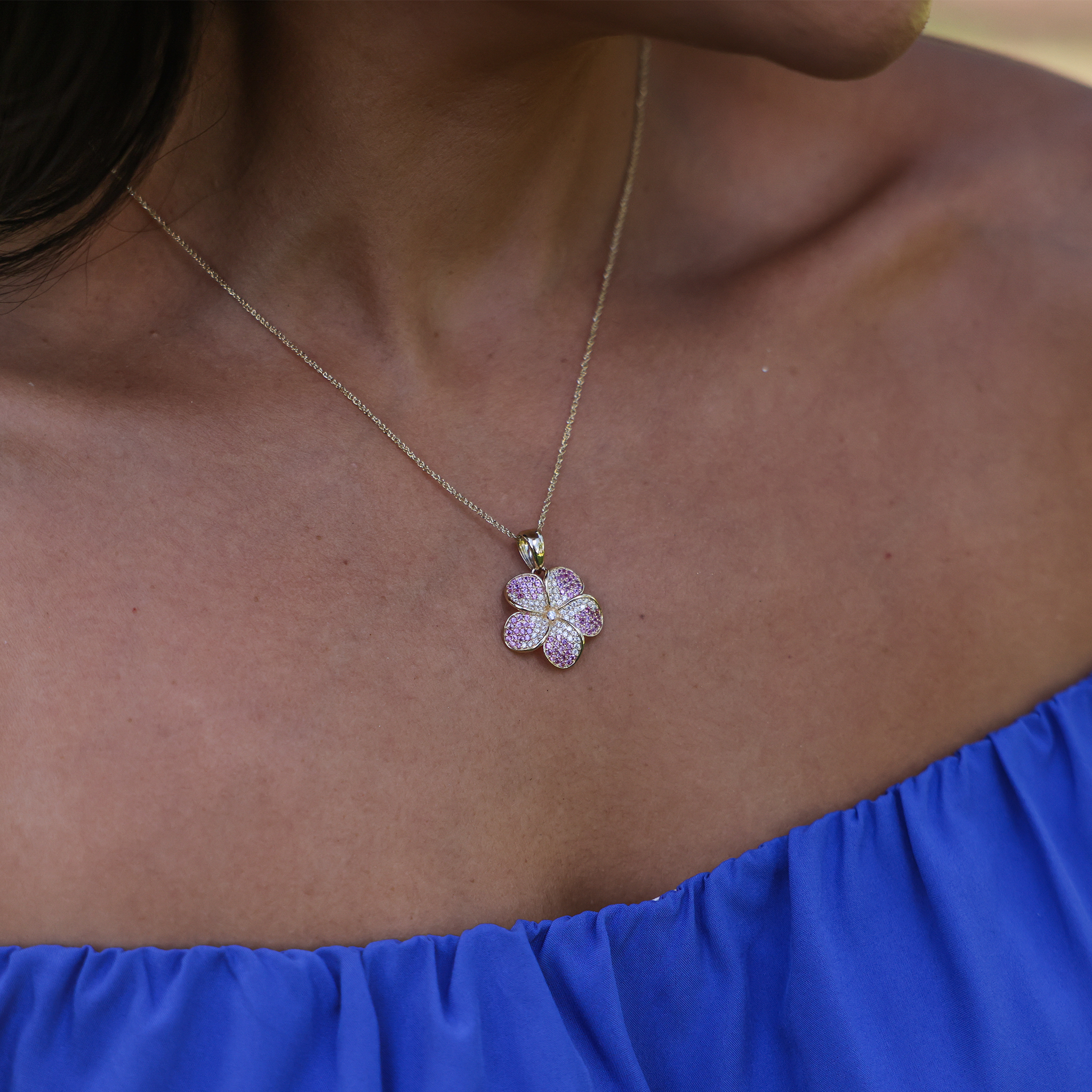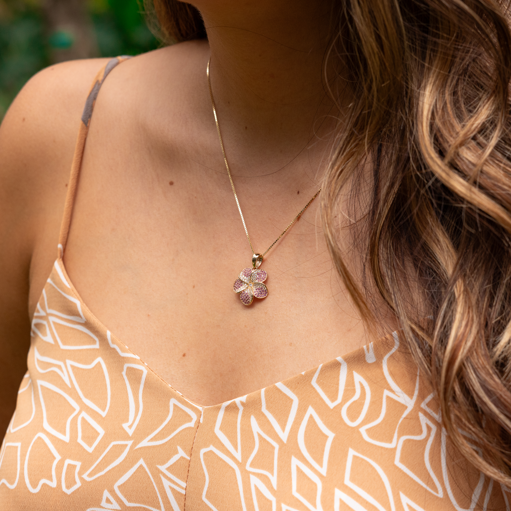 プルメリア ピンクサファイア ダイヤモンド ゴールド ペンダント - 20mm