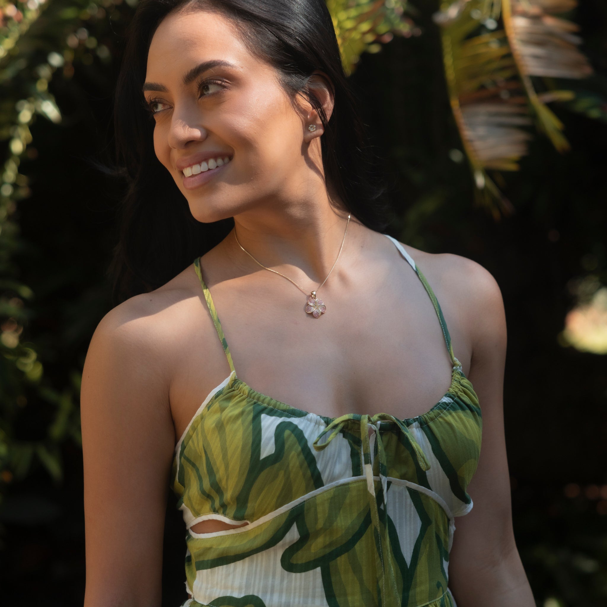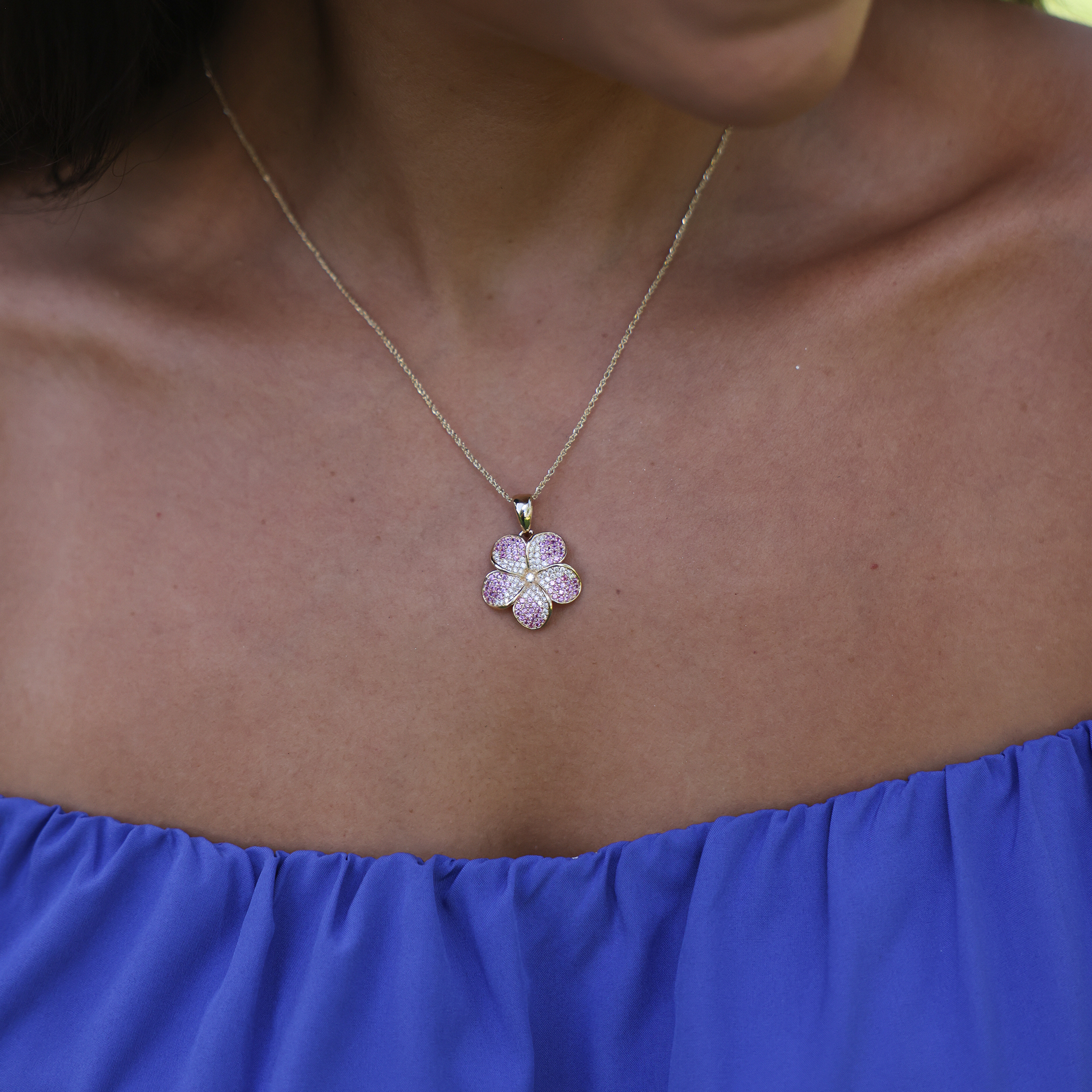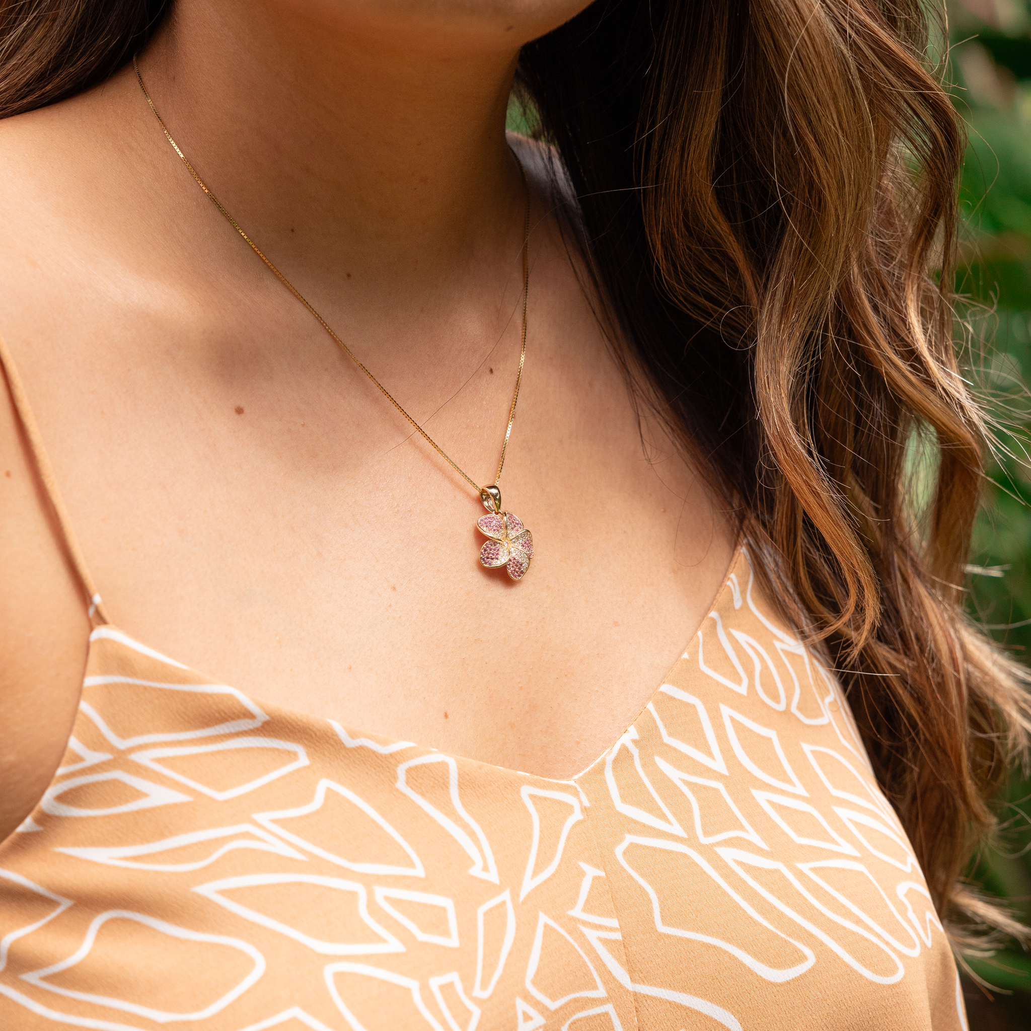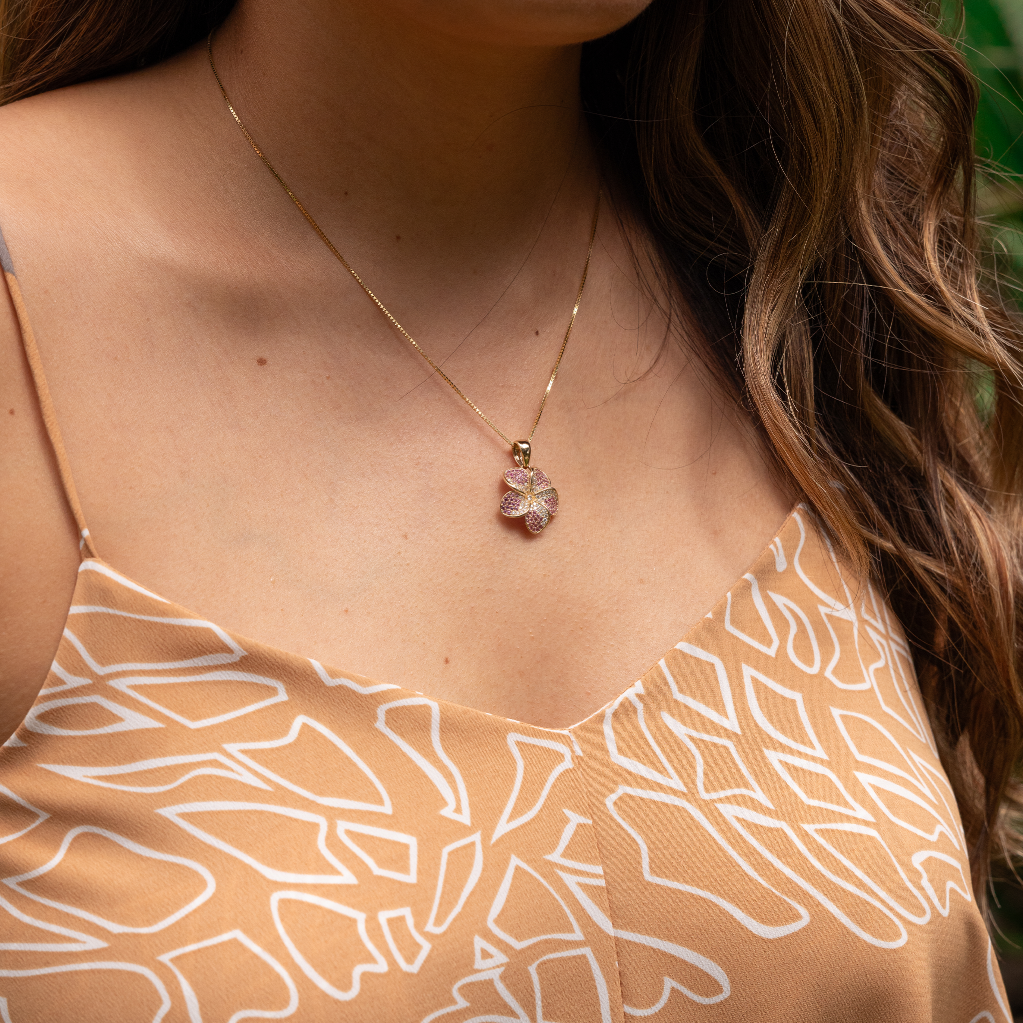 プルメリア ピンクサファイア ダイヤモンド ゴールド ペンダント - 20mm