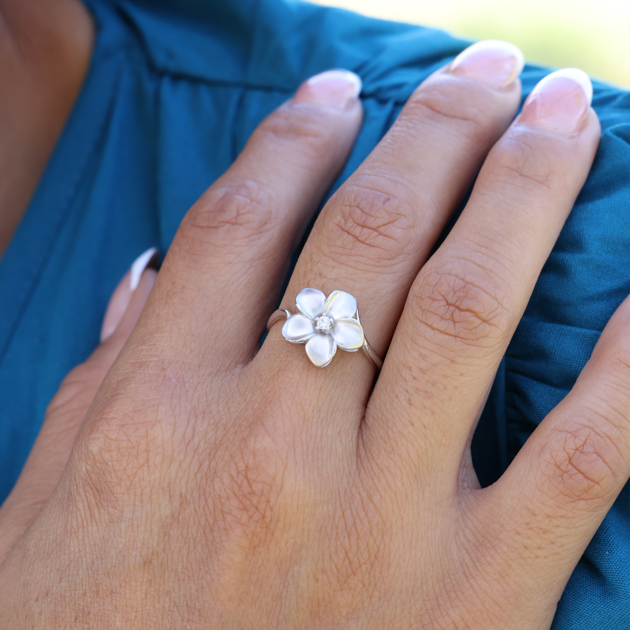 プルメリア ダイヤモンド ホワイトゴールド リング - 13mm