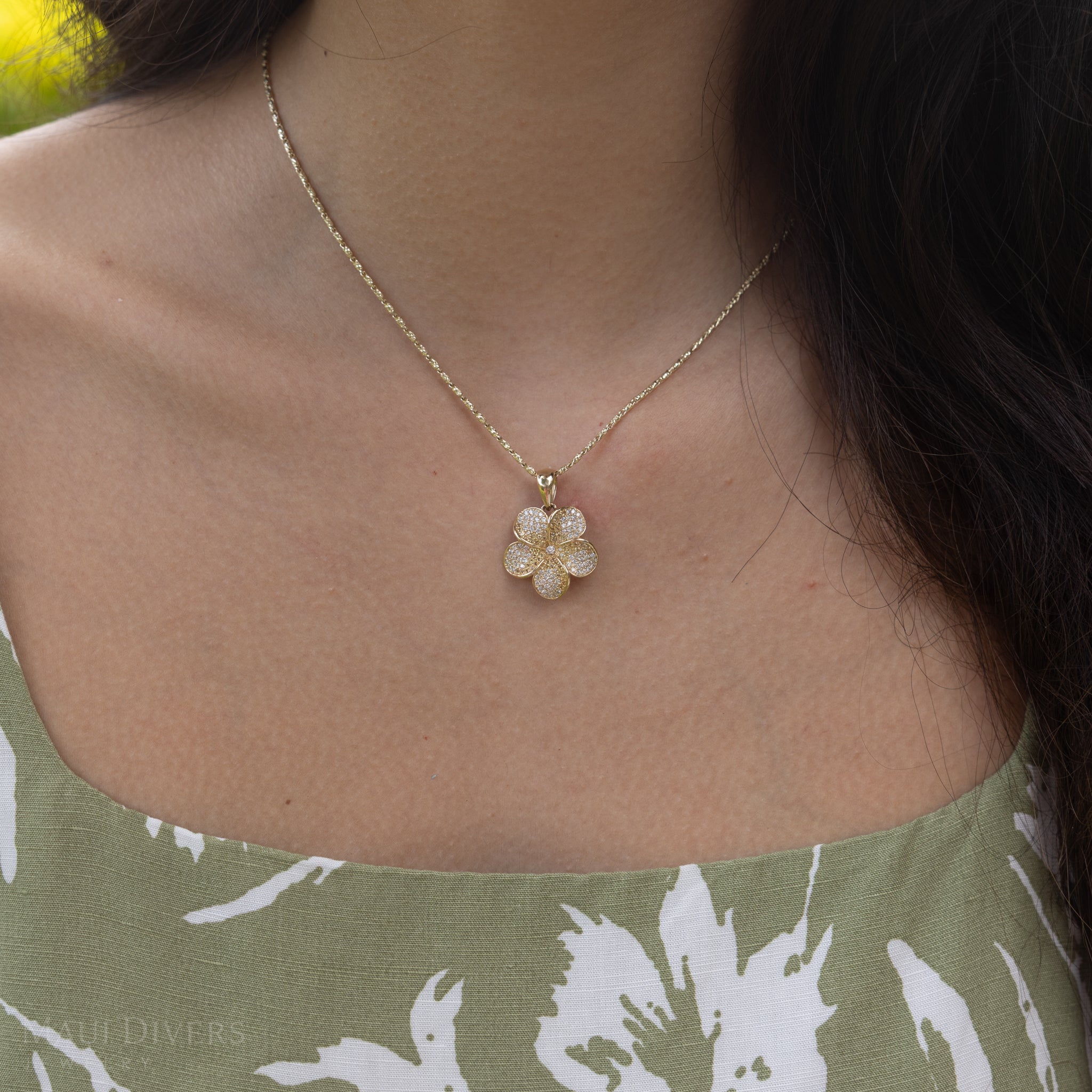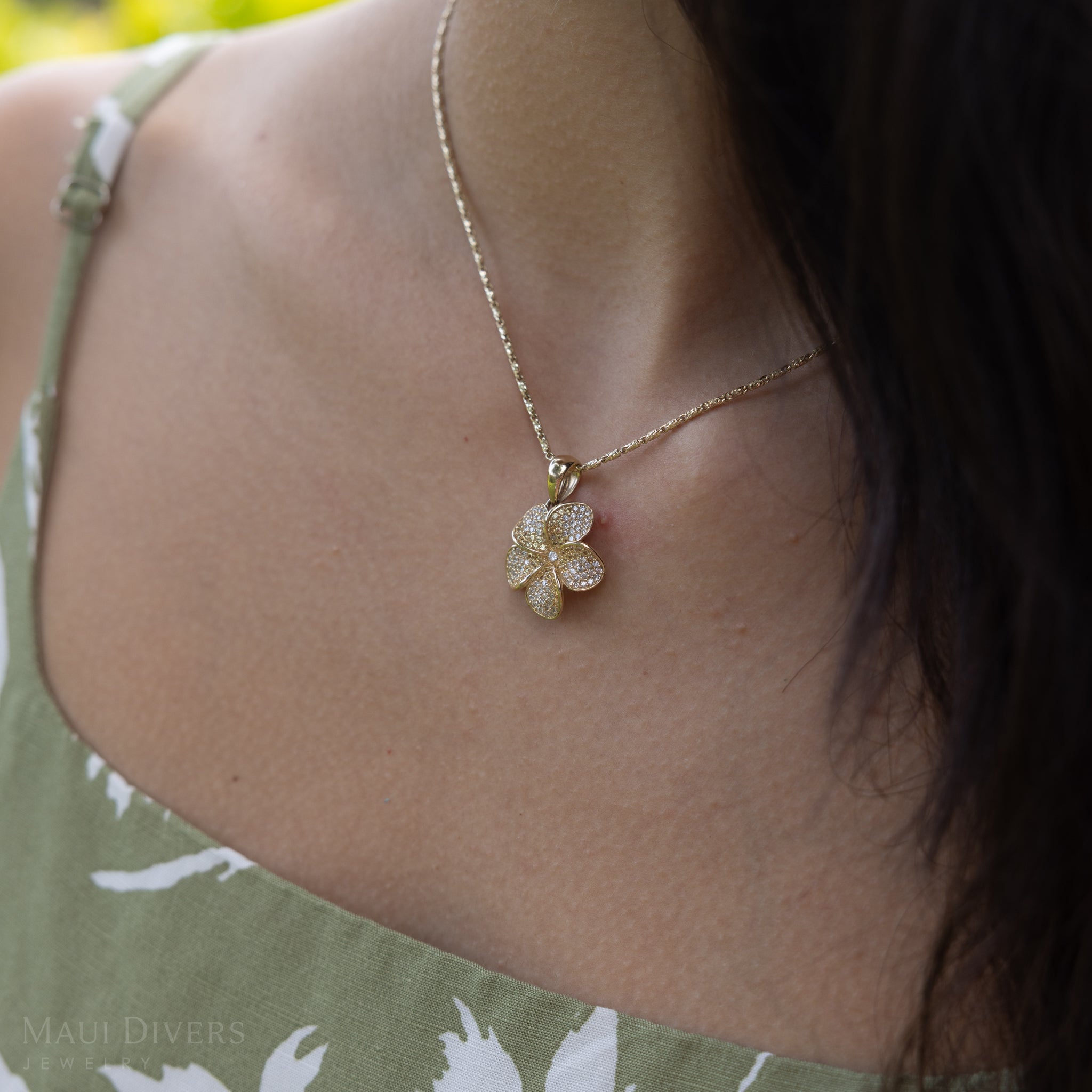 プルメリア イエローサファイア ダイヤモンド ゴールド ペンダント - 20mm
