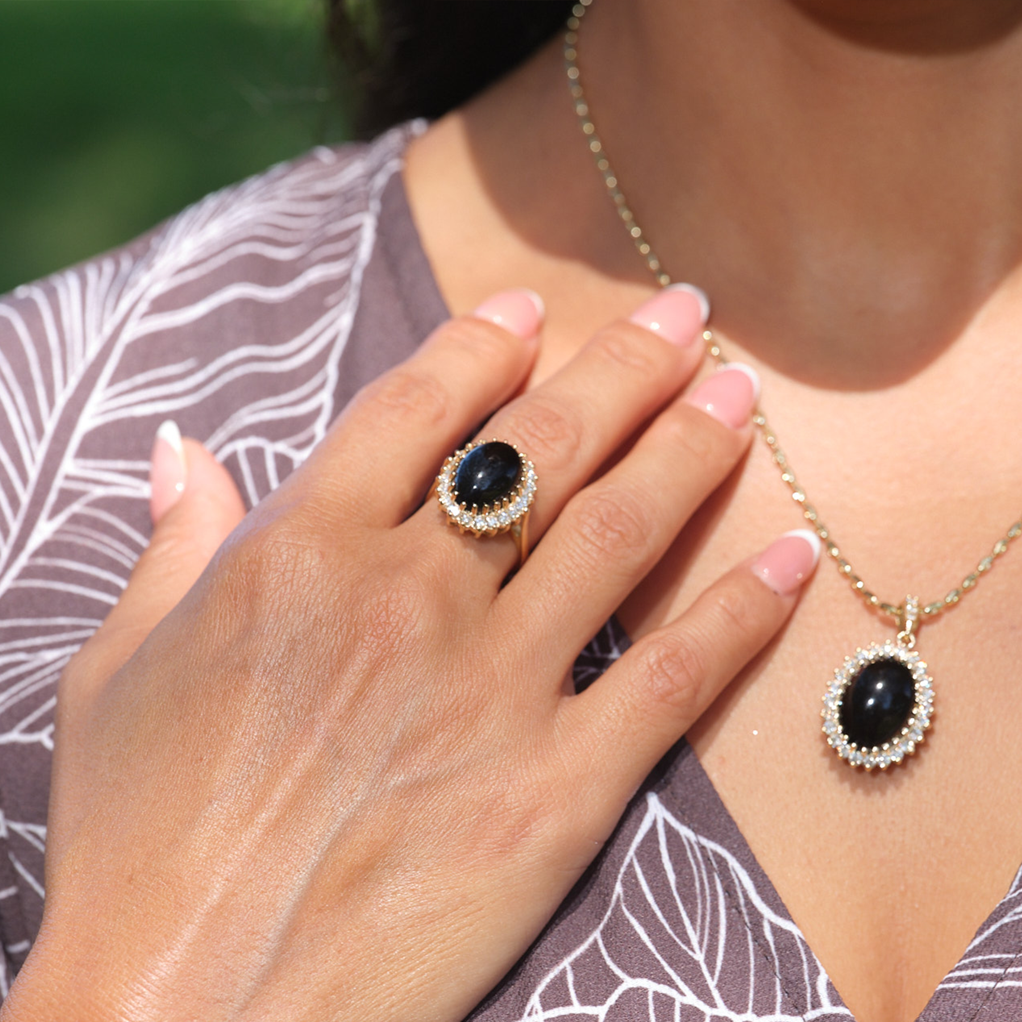 Princess Ka‘iulani Black Coral Ring in Gold with Diamonds - 18.5mm