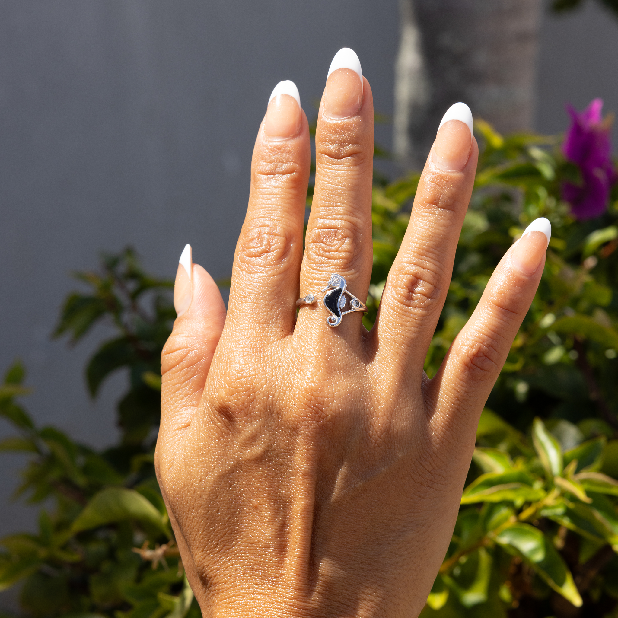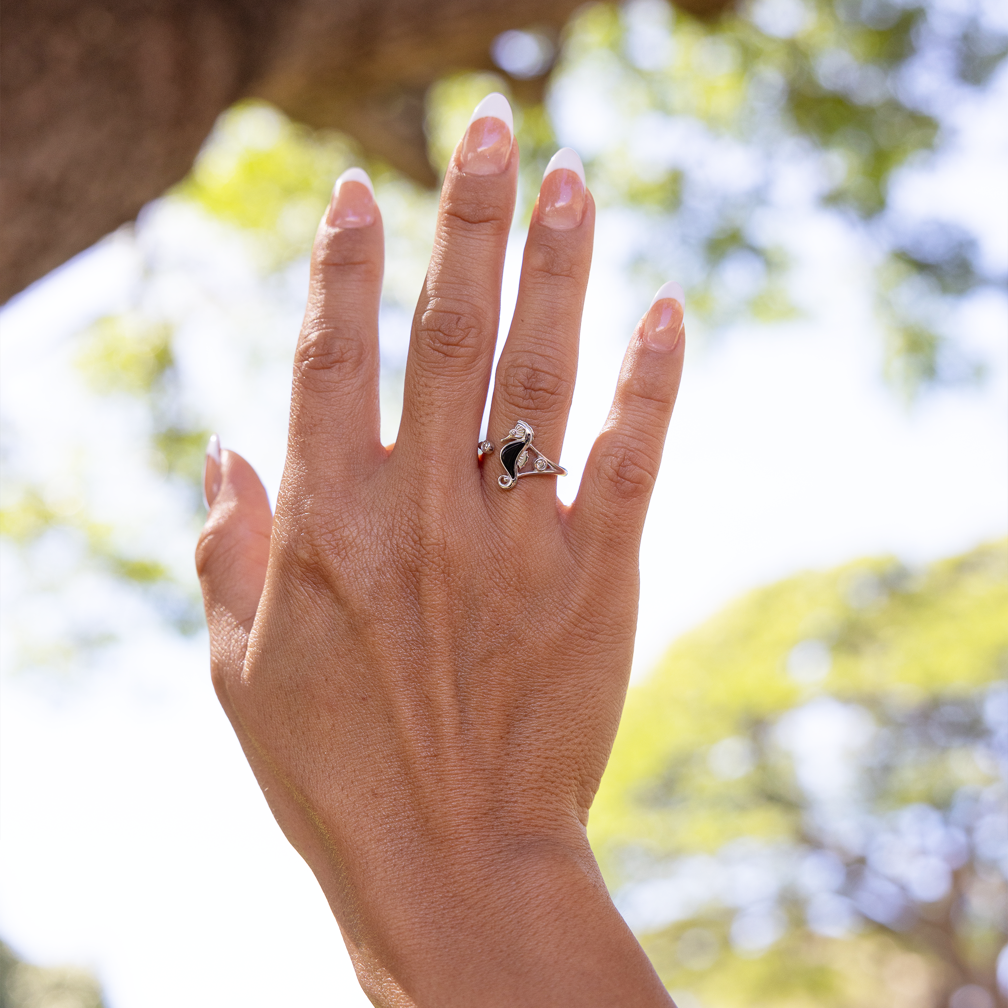 シーライフ・シーホース・ブラックコーラル・リング ダイヤモンド・ホワイトゴールド - 15mm
