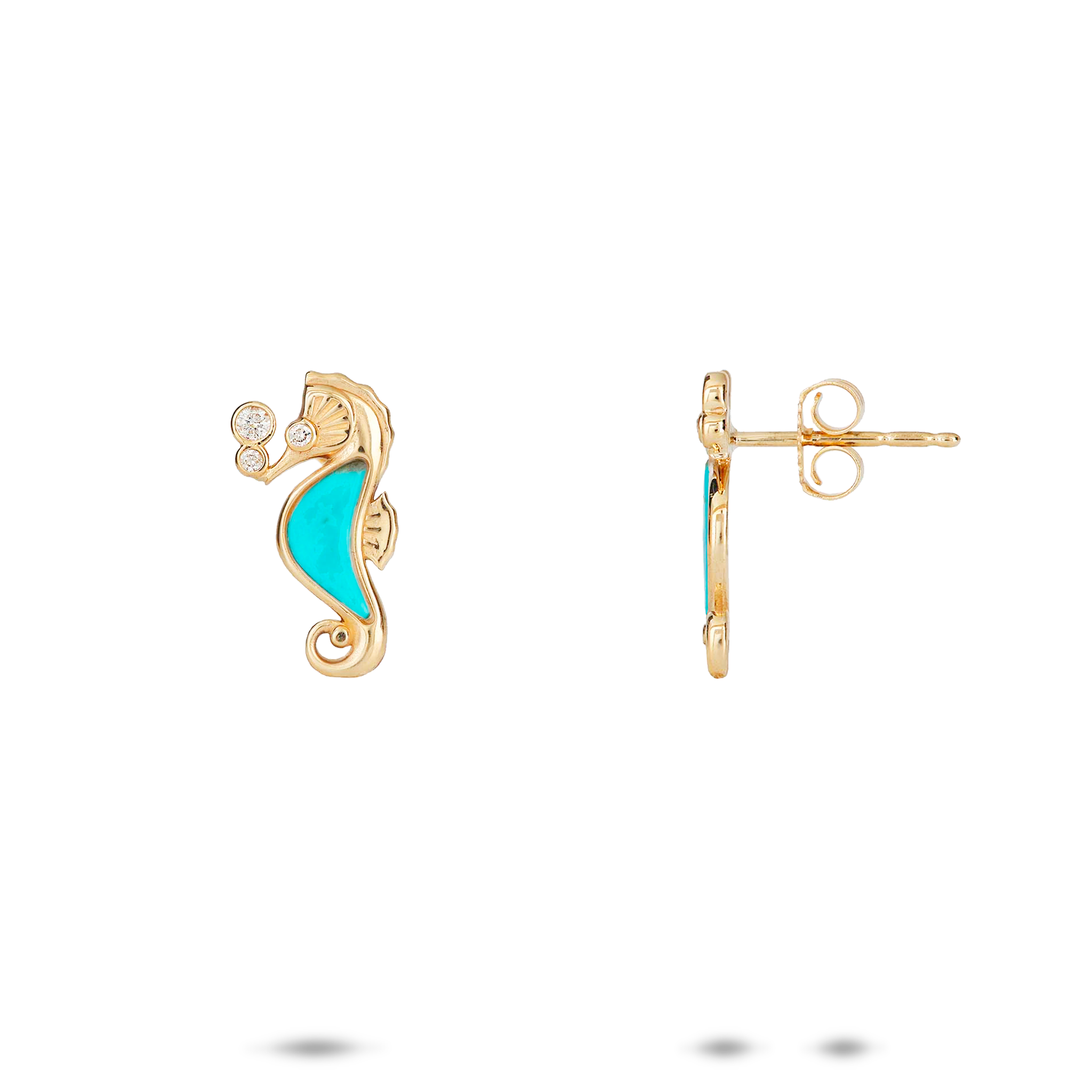 シーライフ・シーホース・ターコイズ・ピアス ダイヤモンド・ゴールド 15mm