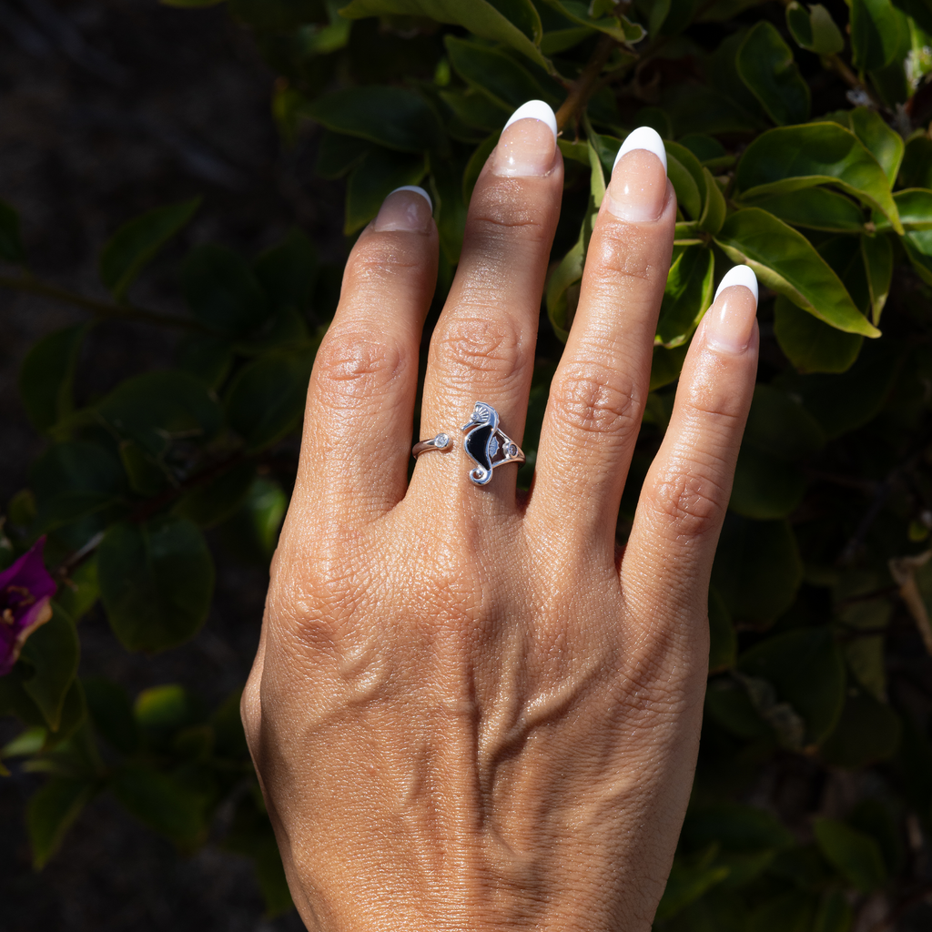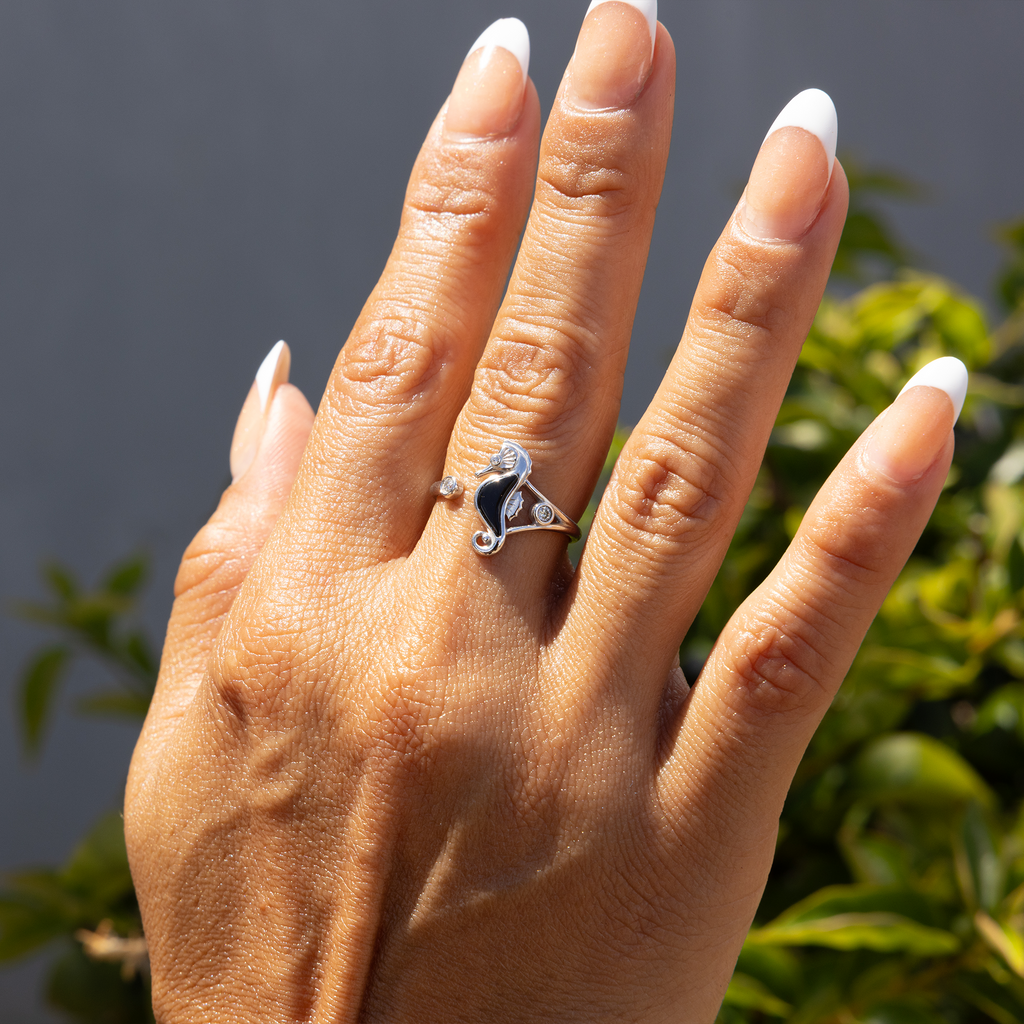 シーライフ・シーホース・ブラックコーラル・リング ダイヤモンド・ホワイトゴールド - 15mm