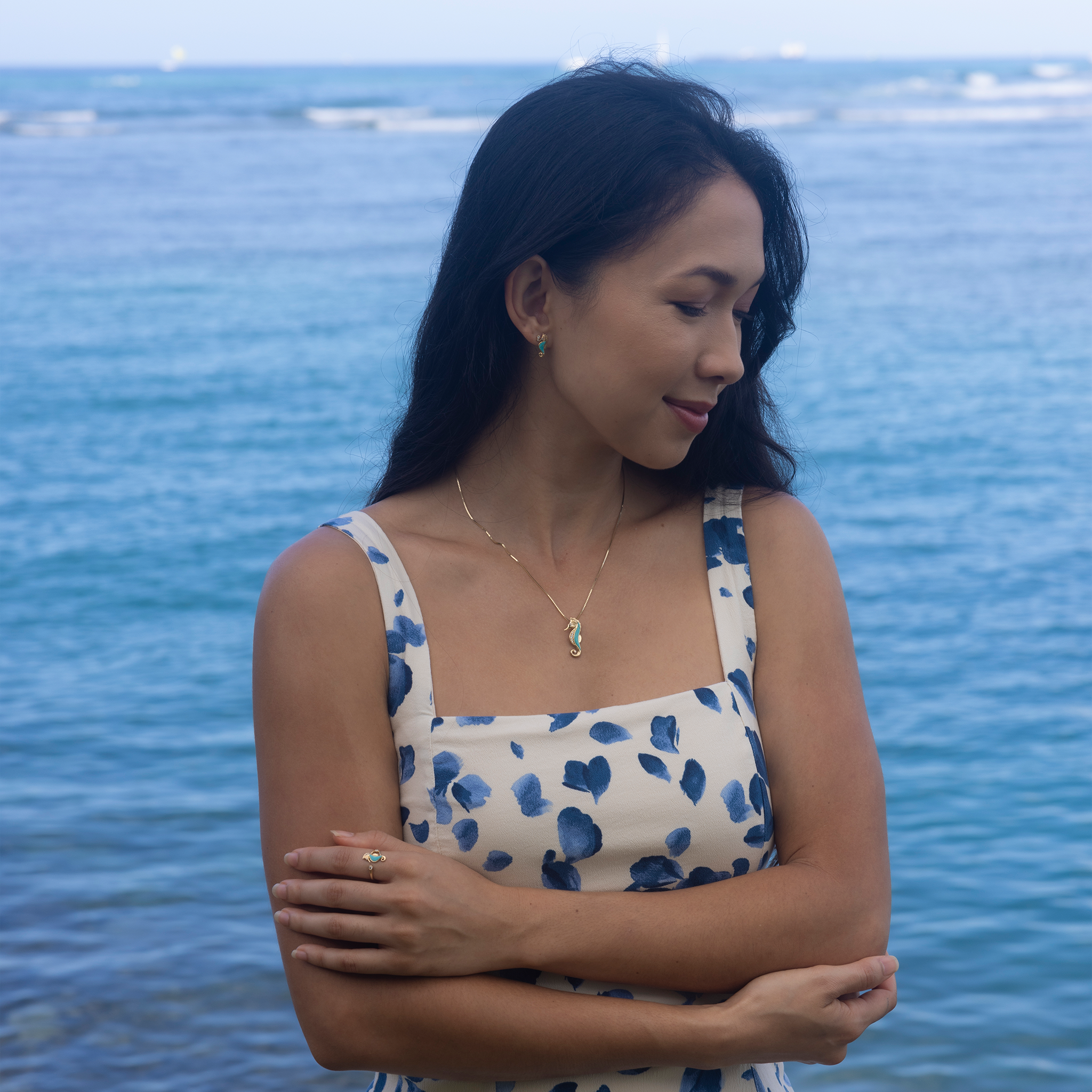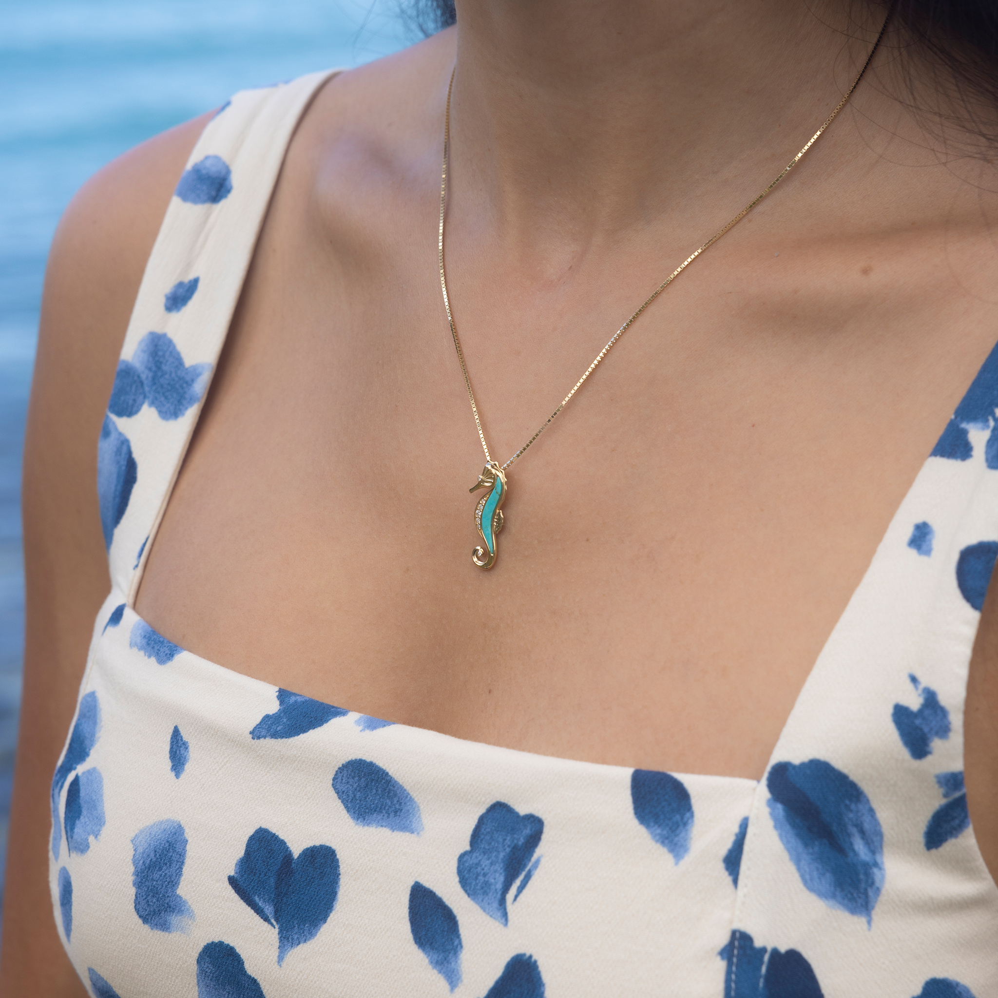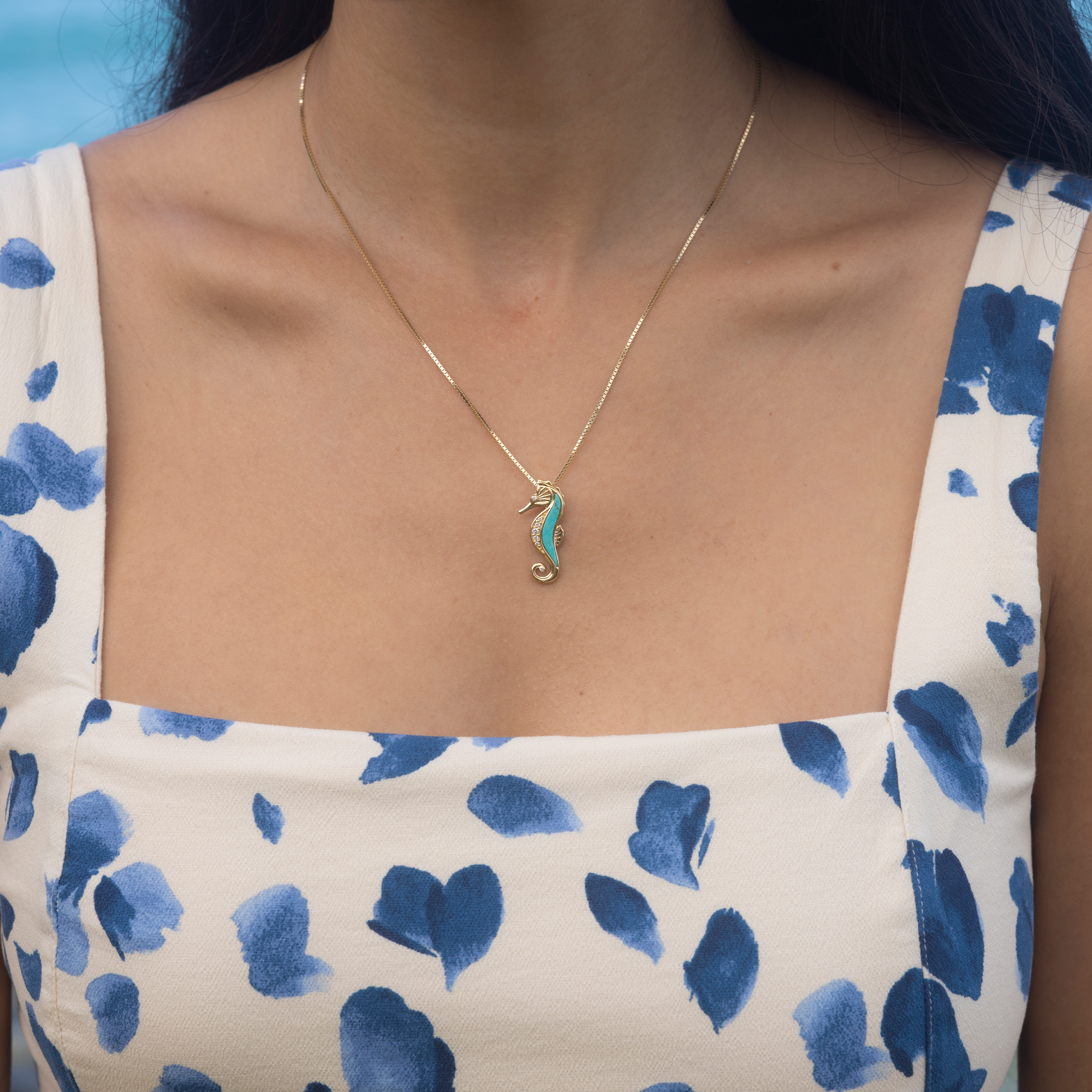 シーライフ・シーホース・ターコイズ・ペンダント ダイヤモンド・ゴールド 27mm