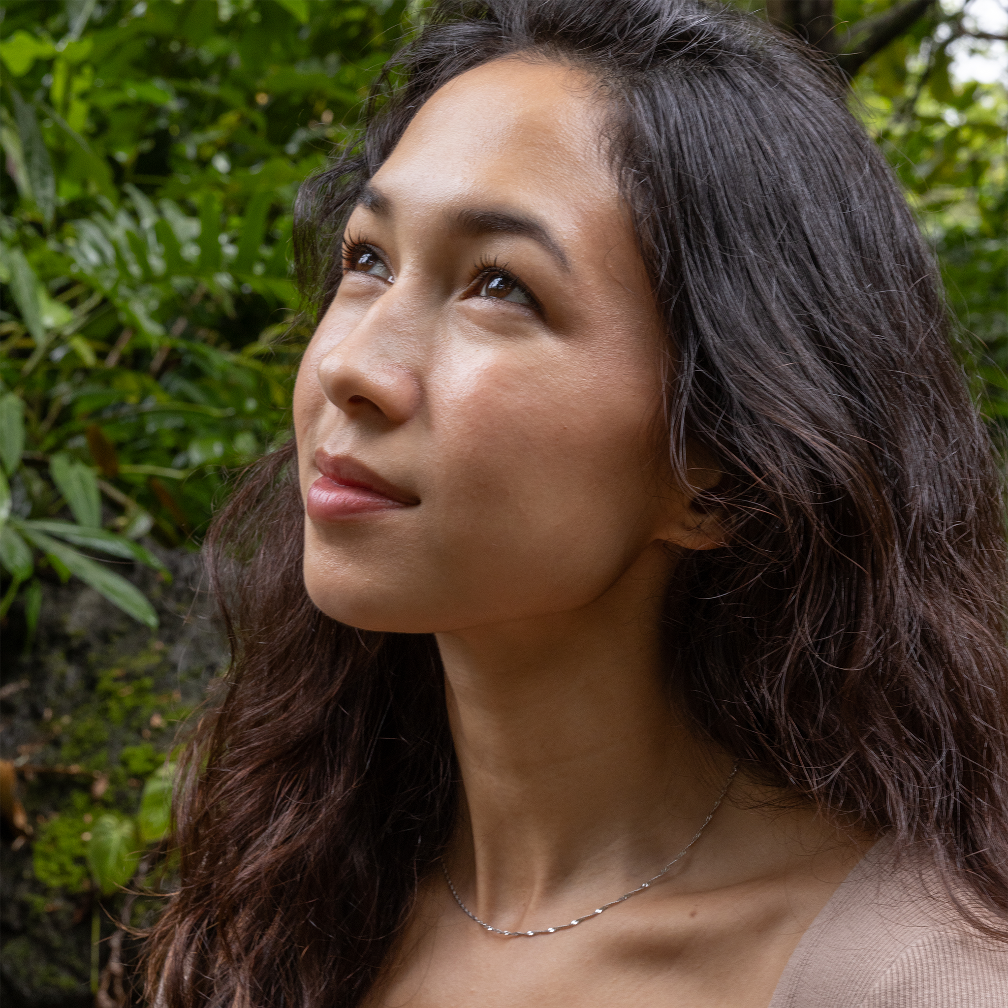 10Kホワイトゴールドの1.5mmシンガポール・チェーンは、輝くツイスト・デザインがペンダントを美しく引き立てます。