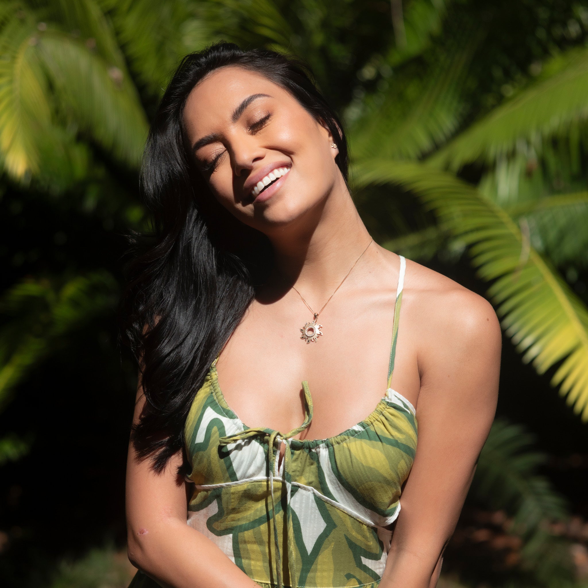 太陽の輝きが止まらないサン・ペンダント。サテン仕上げのイエローゴールドのフレアな光線に、きらめくダイヤモンドカットを施し、ダイヤモンドの光輪をあしらった見事なペンダント。