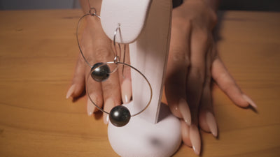 14Kホワイトゴールドのタヒチアンブラックパールピアスは、日常使いのクラシックなアクセサリー。