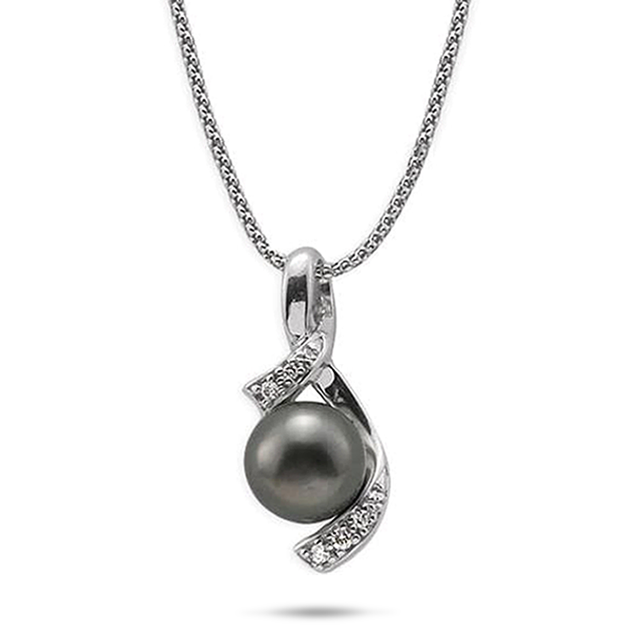 ダイヤモンド ホワイトゴールド 18 "タヒチアンブラックパール ペンダントネックレス 10-11mm