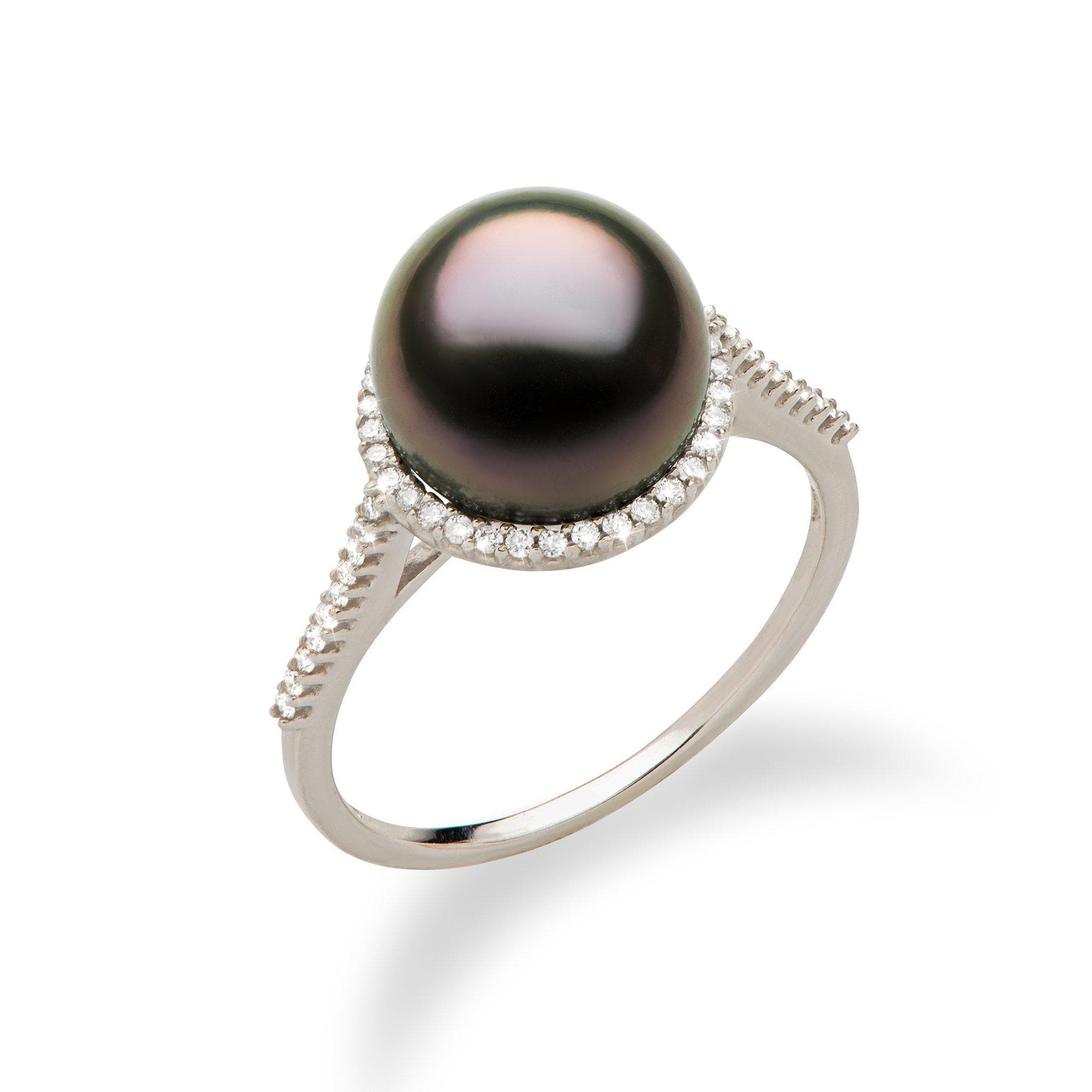 Halo Tahitian Black Pearl Halo Ring in White Gold with Diamonds - 9-10mm