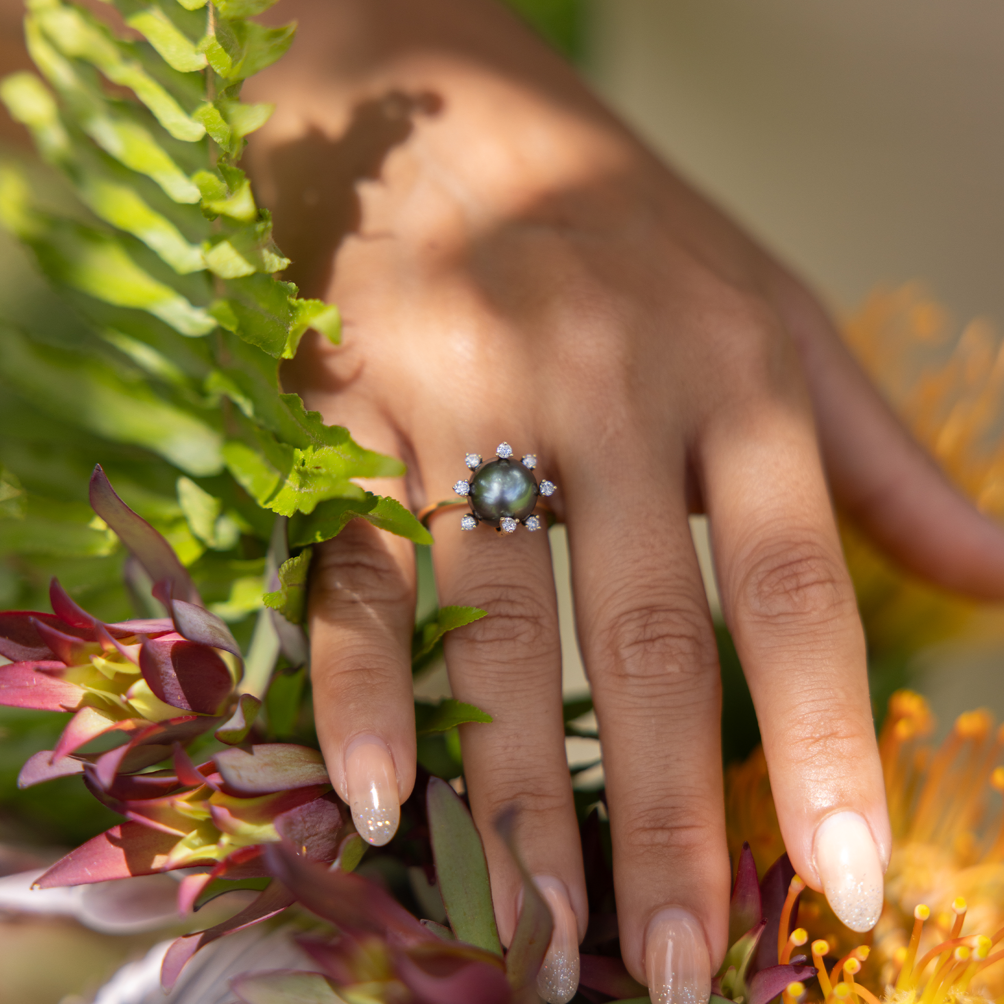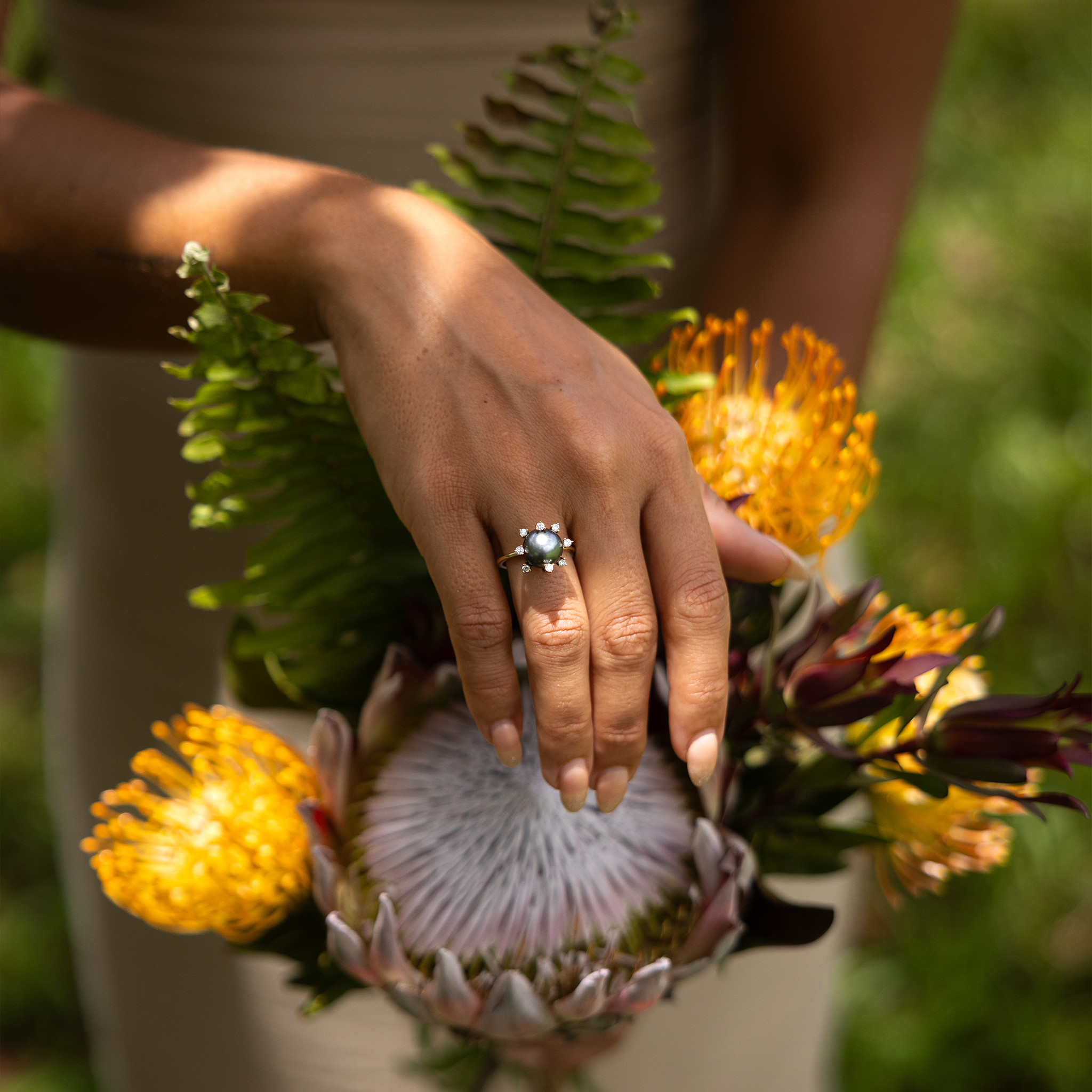プロテアは、他にはないトロピカルな美しさを持つ古代の花である。ハワイの山々で見られるこの花は、強さと勇気を象徴しています。フレアーダイヤモンドの花びらとゴージャスな手選別のパールが織り成す独特のクラフツマンシップをぜひご堪能ください。