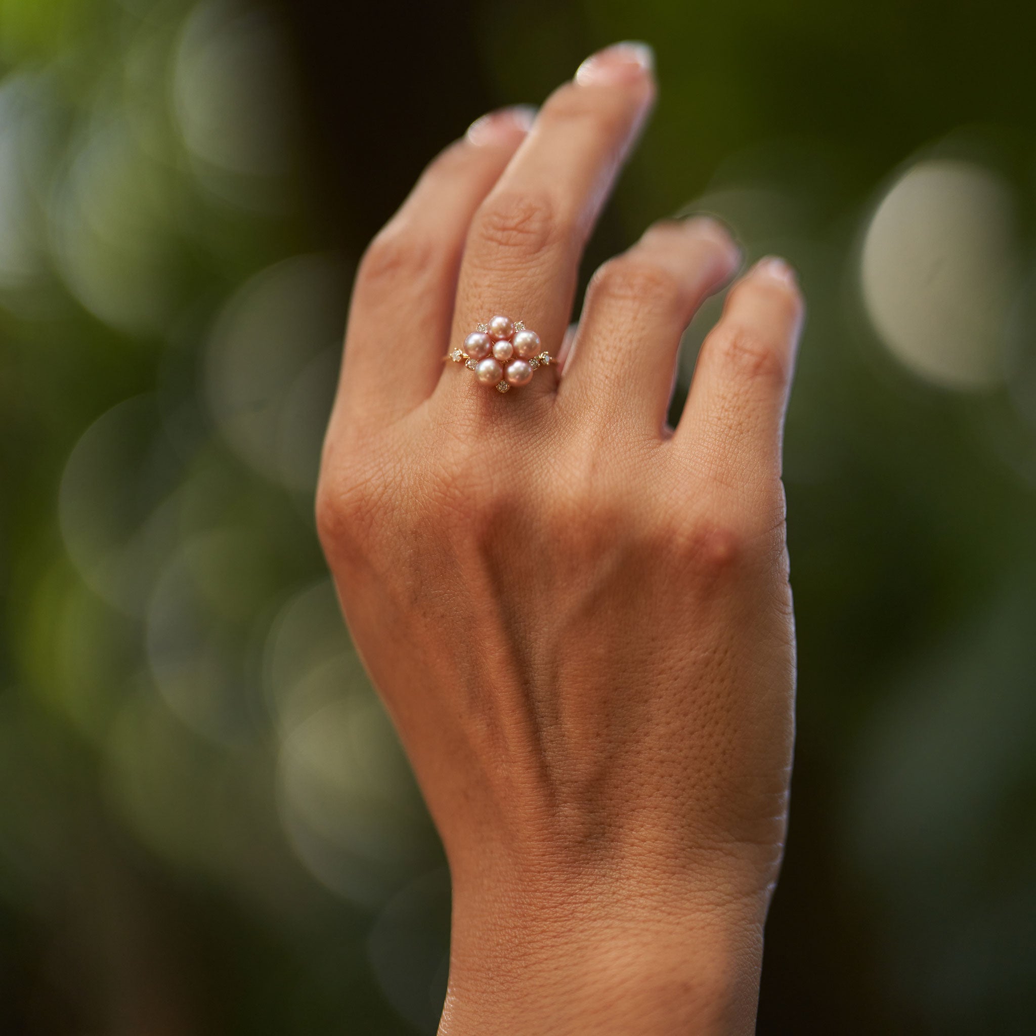タイニーバブルス ラベンダー 淡水パール リング ダイヤモンド ゴールド