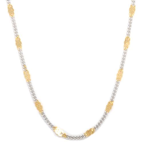 スターリング・シルバーとイエローゴールドのリンク・チェーンで、あなたの装いにツートーンのセンスを。フラットなハイポリッシュ・アクセントと連結リングのユニークなコンビネーション。