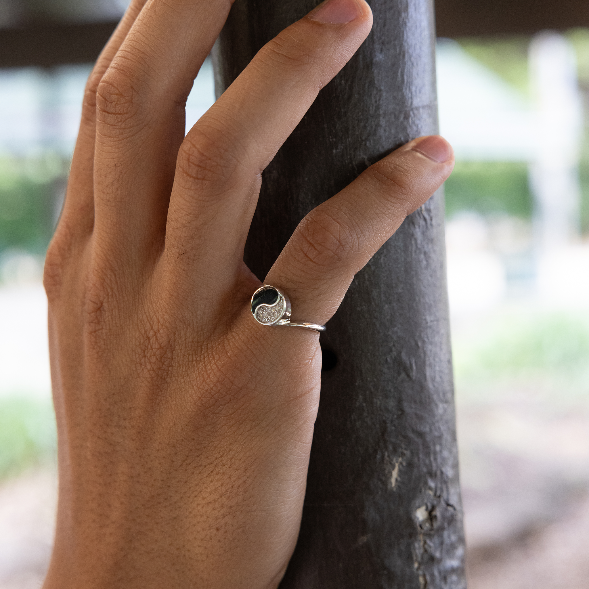 陰陽黒珊瑚 ダイヤモンド ホワイトゴールド リング - 7.5mm