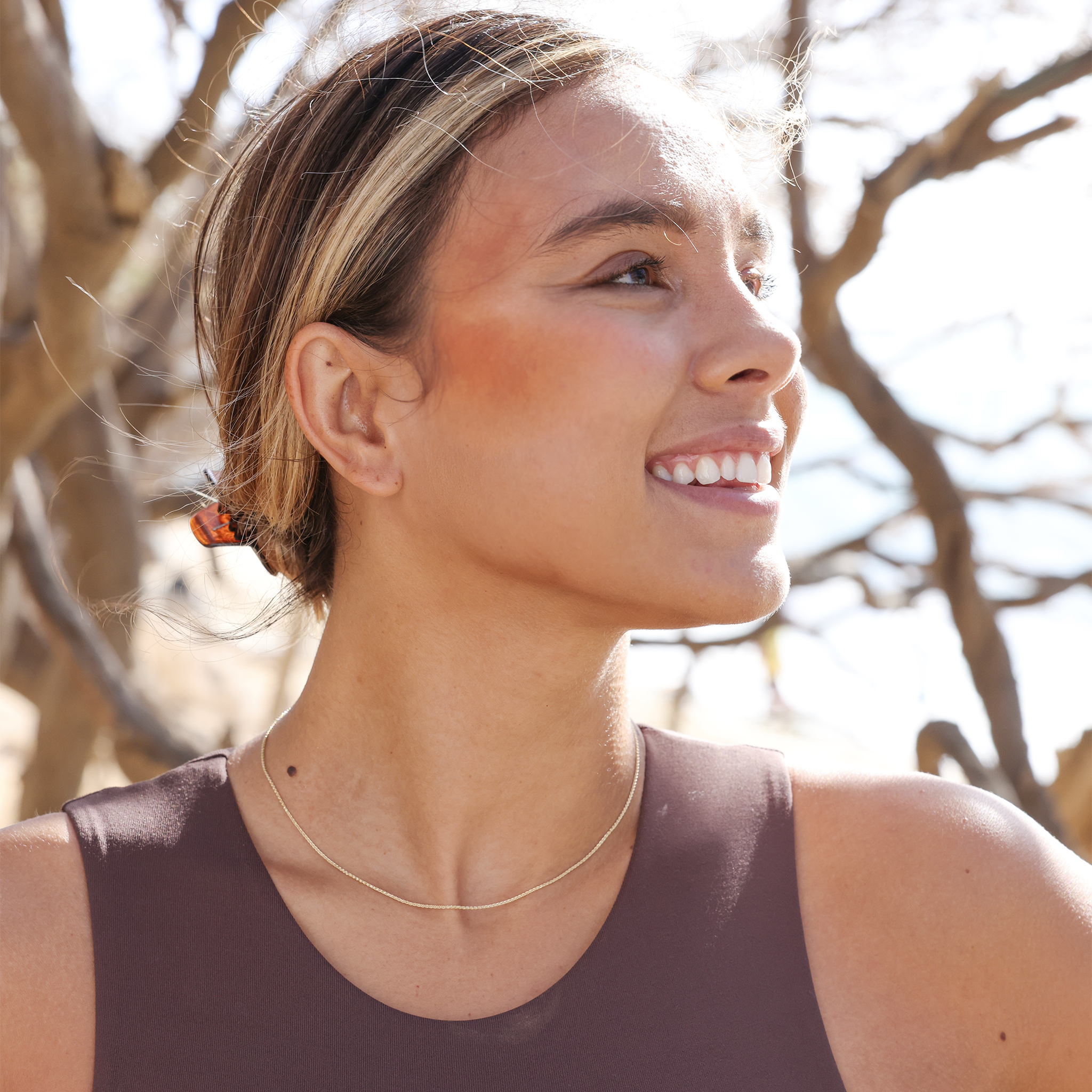 The 1.2mm Espiga Chain in 14k yellow gold features a tightly woven and continuous pointed pattern that creates a textured look. A strong, durable, and dependable everyday chain.