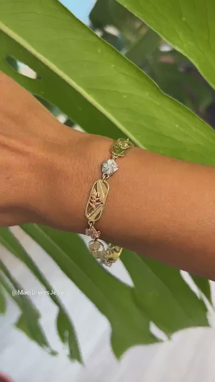 Adjustable 7.25-8.25" Hawaiian Gardens Hibiscus Bracelet in Four Tone Gold with Diamonds