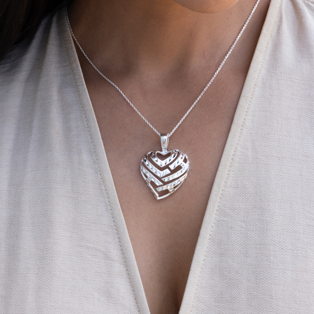 24" Adjustable Aloha Heart Pendant Necklace in Sterling Silver - 30mm