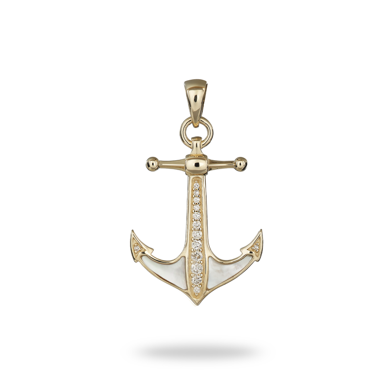 Sealife Anchor Mother of Pearl Pendant in Gold with Diamonds - 28mm