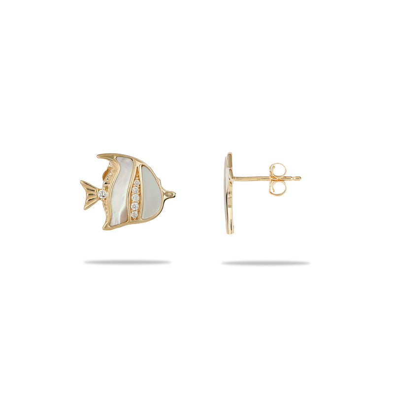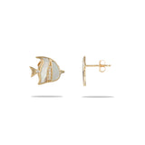 Sealife Angelfish Mother of Pearl Earrings in Gold with Diamonds - 12mm