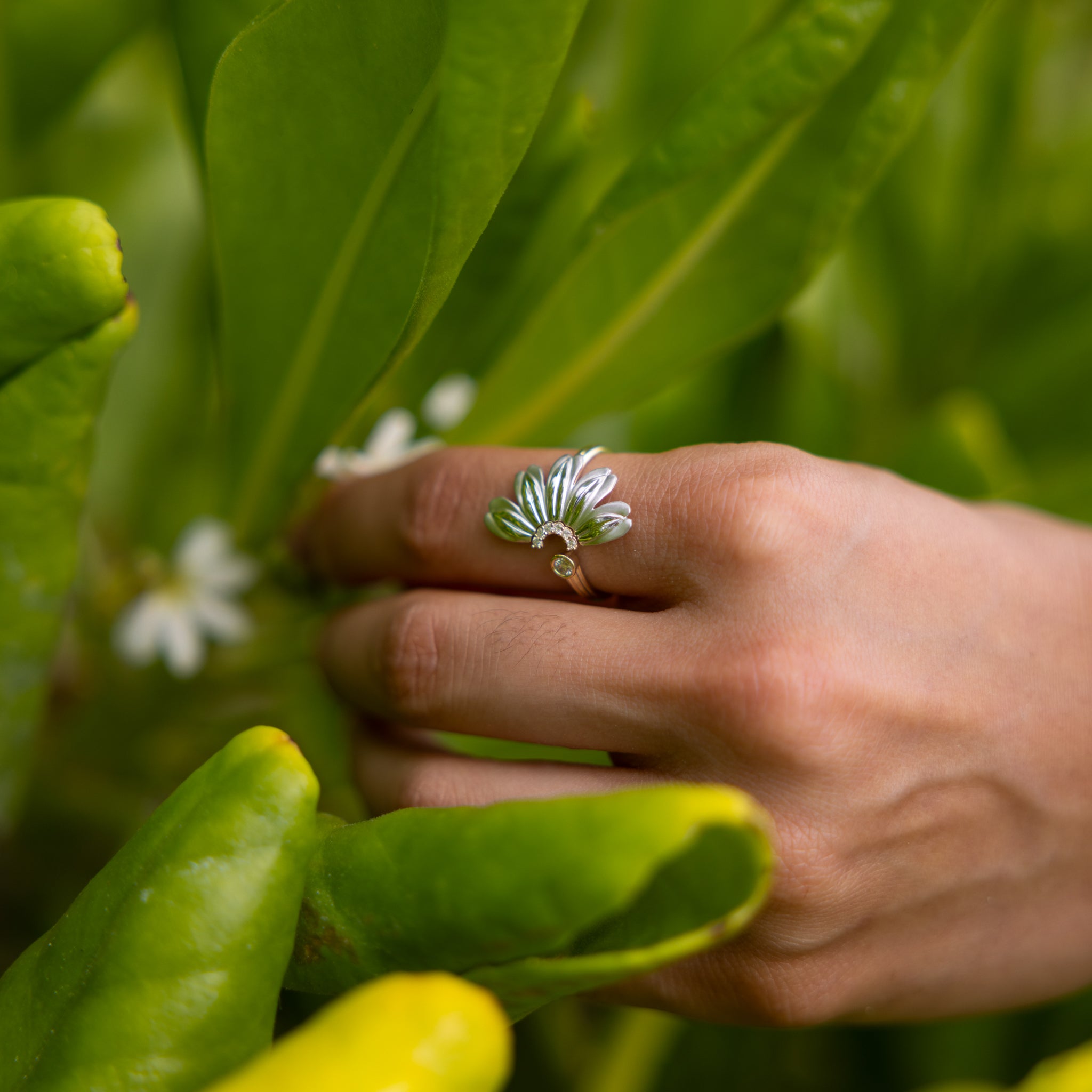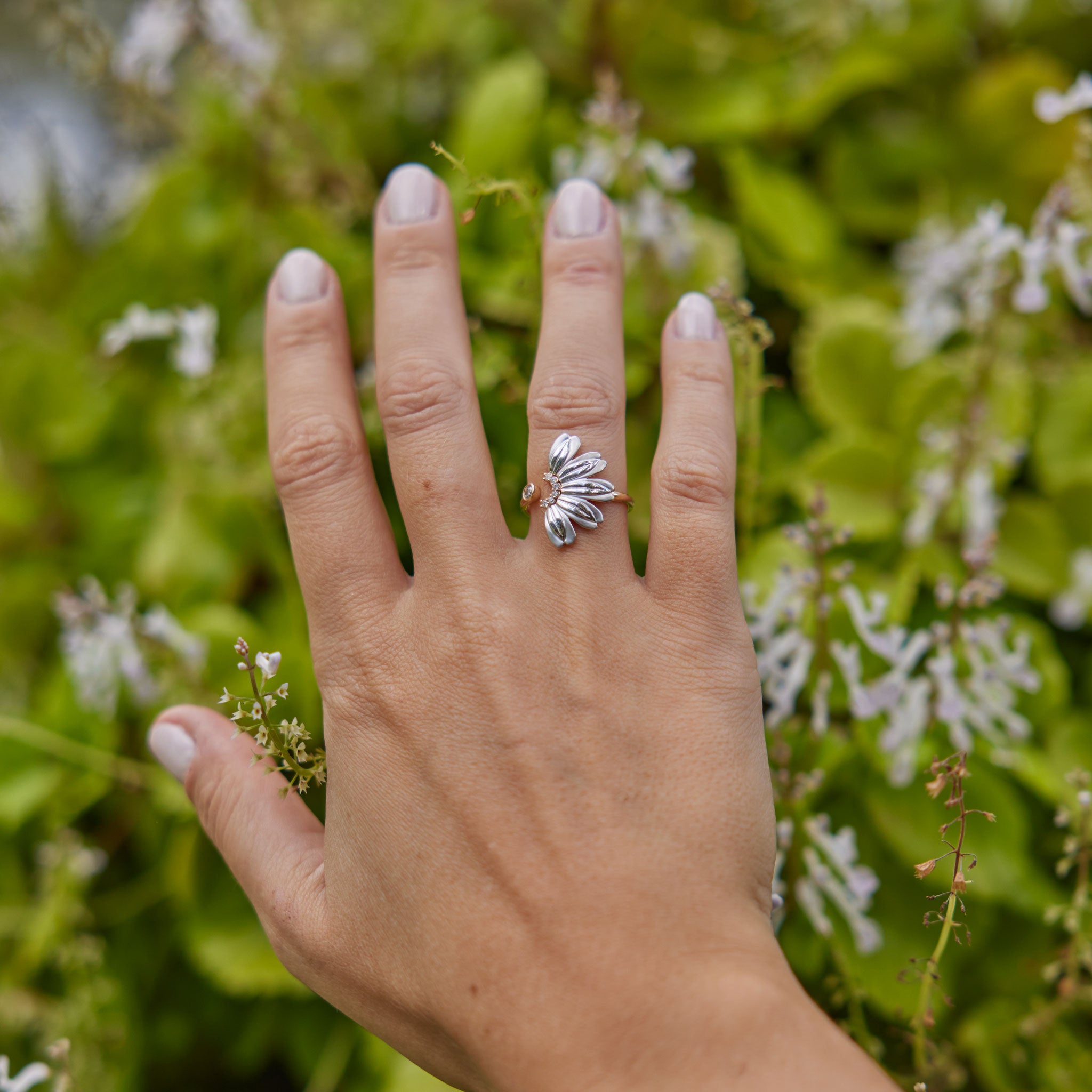 Beach Naupaka Ring in Two Tone Gold with Diamonds