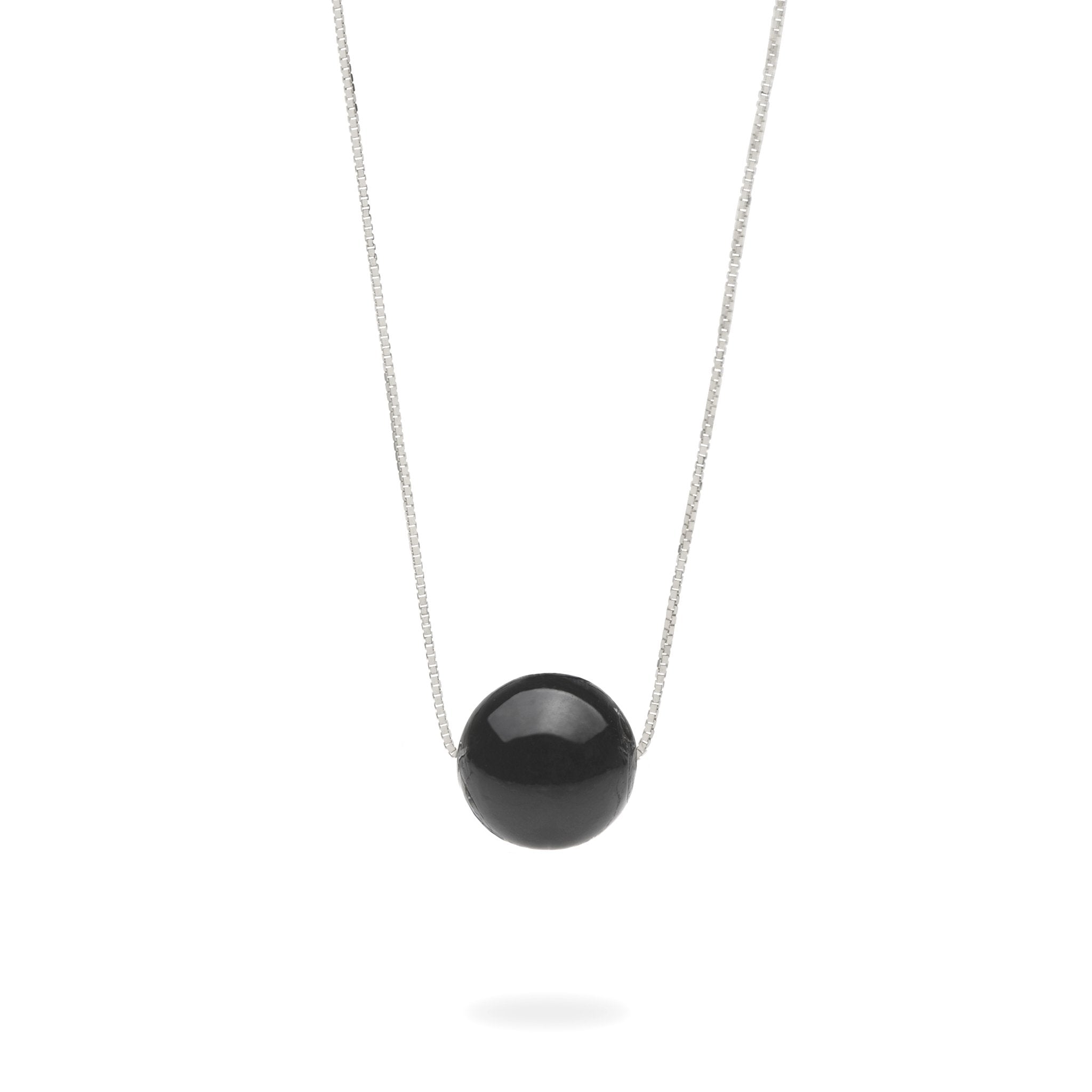 Simple and sleek, this necklace features a lustrous Hawaiian black coral bead on a sleek 14k white gold box chain.