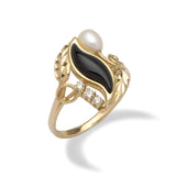 Paradise Black Coral & Pearl Ring in Gold with Diamonds - 21mm