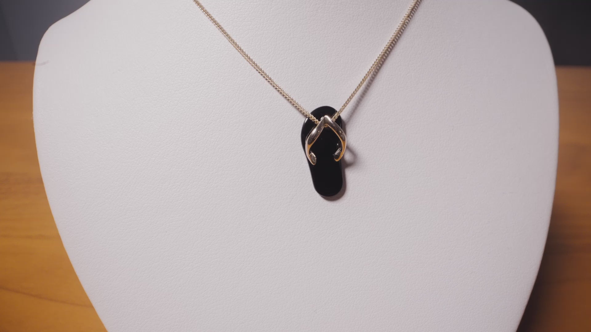 Inspired by flip-flops or "Slippers" in Hawaiʻi, this playful Slipper Pendant is crafted in 14k Yellow Gold. Crafted with lustrous Hawaiian black coral, the official state gem of Hawaiʻi.