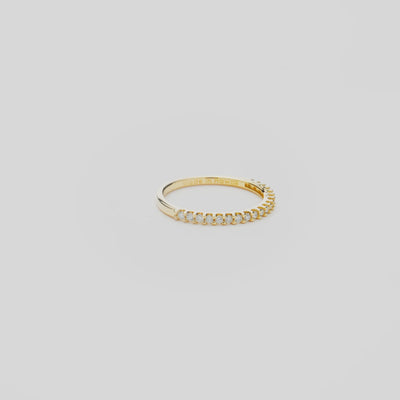 The Anniversary Ring features a petite band with ethically sourced diamonds in 14k yellow gold. Stack this diamond anniversary ring with your favorites for added sparkle!