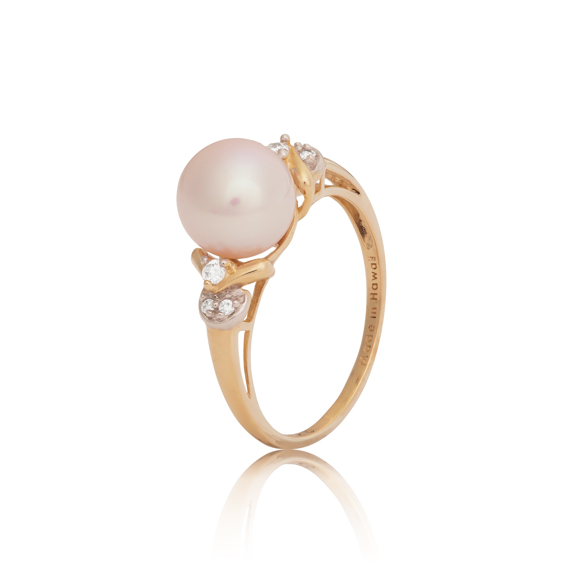Nothing is more classic than white pearls and this lovely white freshwater pearl ring is a perfect choice. With sparkling diamonds on each side of the rose gold band, this pearl ring is a sight to behold.