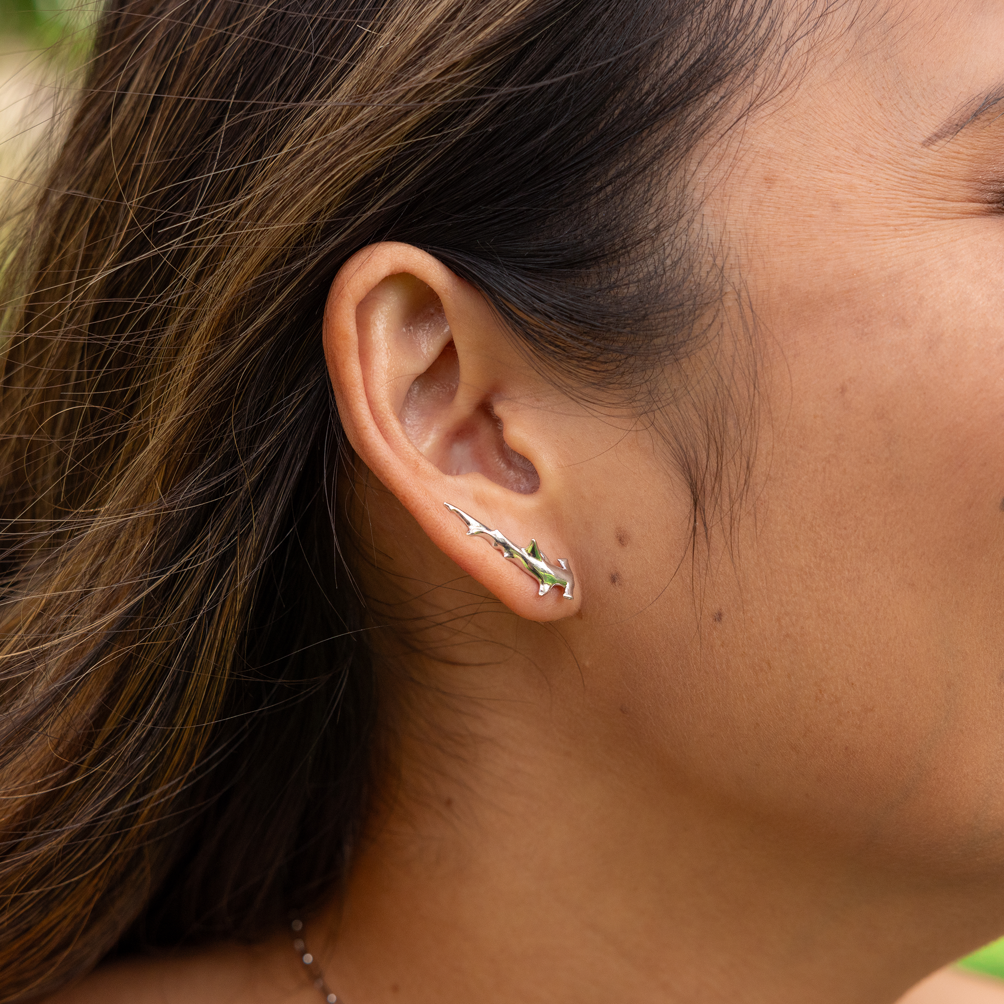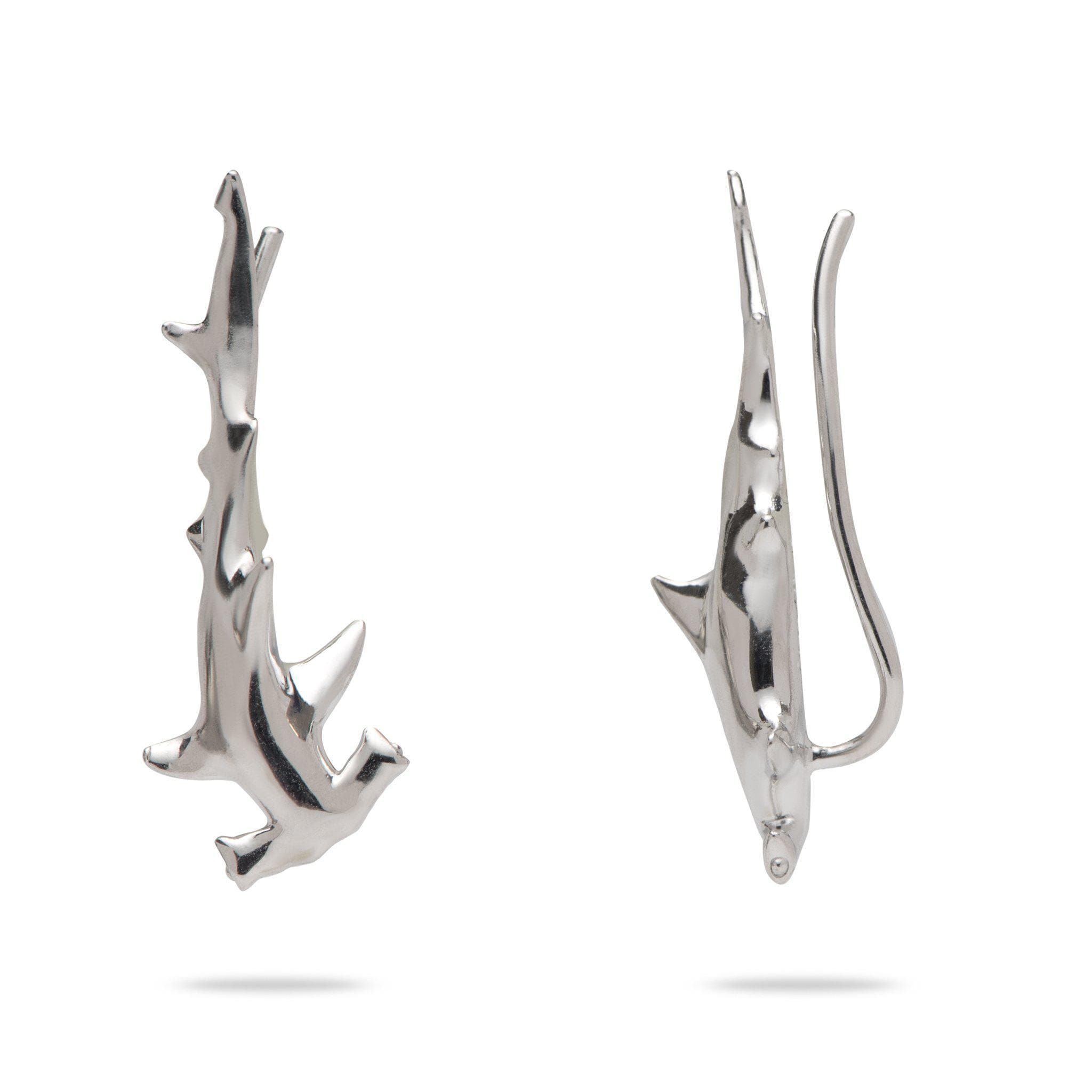 Hammerhead Shark Climber Earrings in Sterling Silver