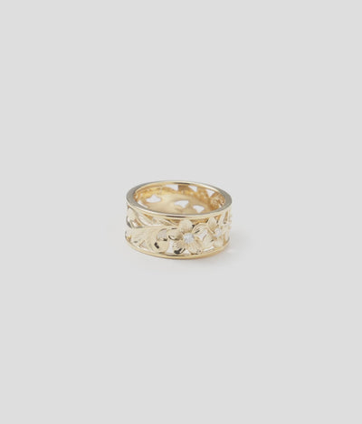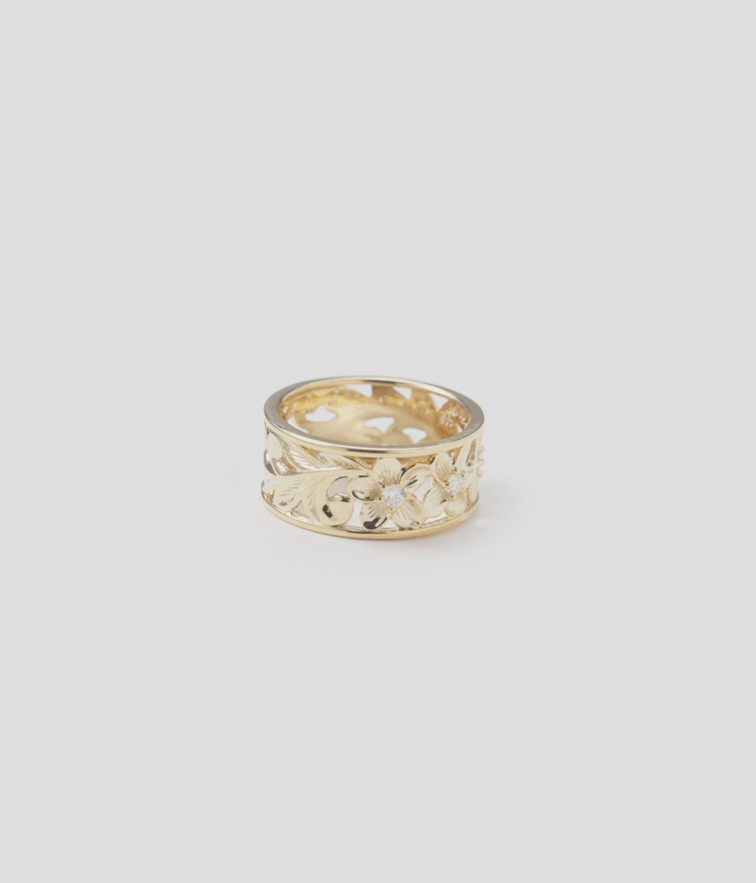 Hawaiian Heirloom Plumeria Ring in Gold with Diamonds - 8mm