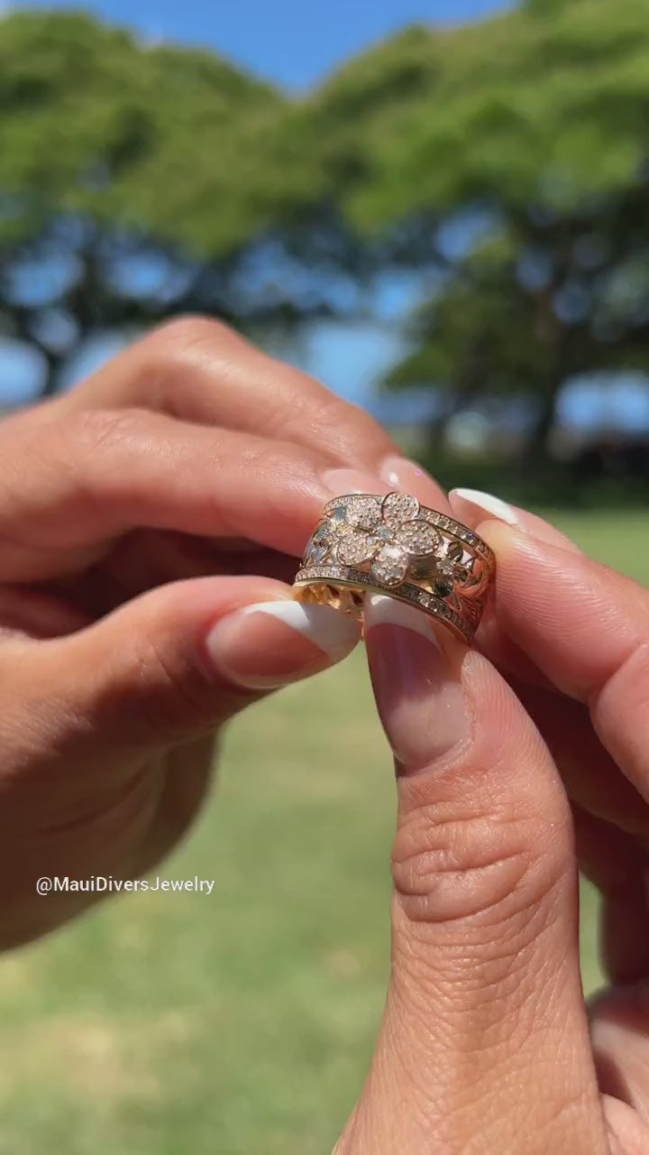 Hawaiian Heirloom Plumeria Engagement Ring in Gold with Diamonds - 10mm
