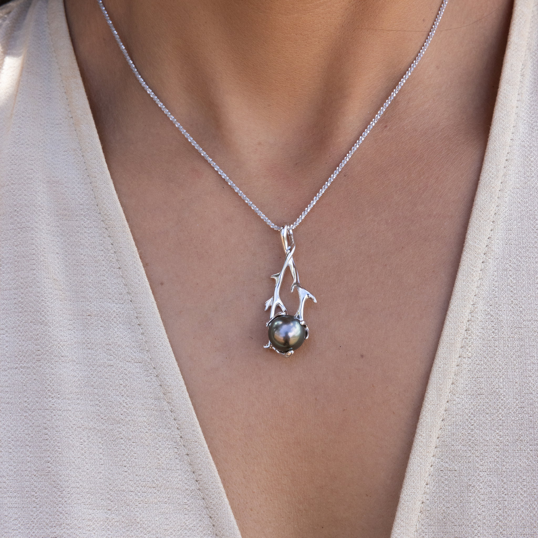 Heritage Tahitian Black Pearl Pendant in White Gold - 9-10mm