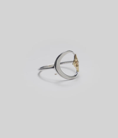Hawaiian Quilted Star and Moon Ring in Two Tone Gold with Diamond - 13mm