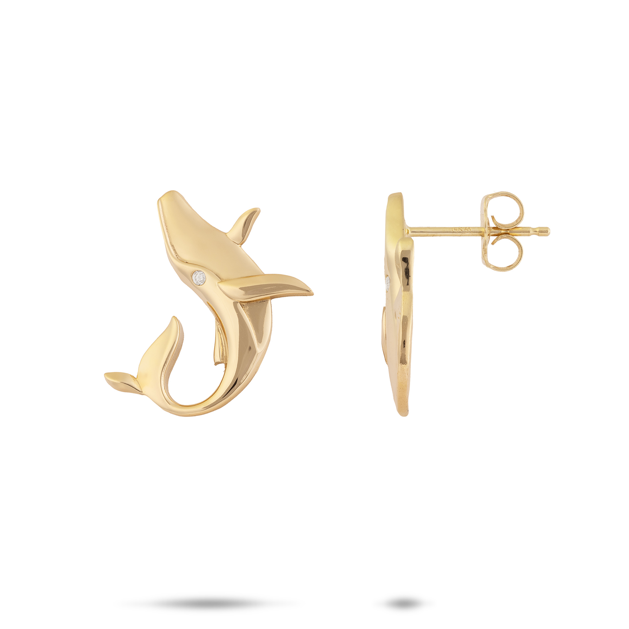 Ocean Dance Humpback Whale Earrings in Gold with Diamonds - 19mm
