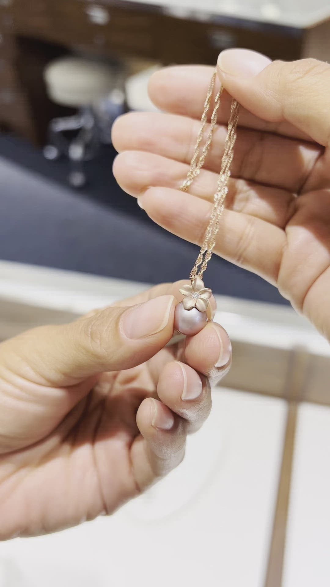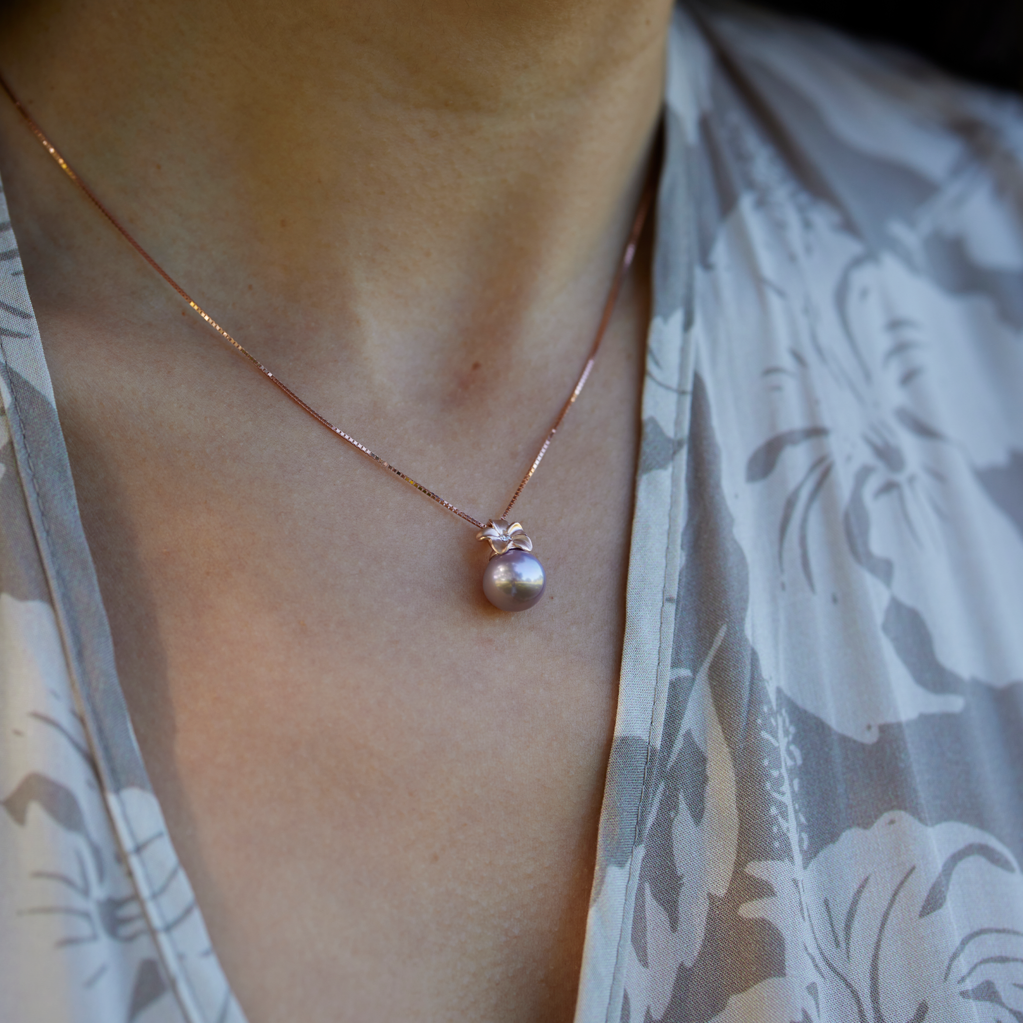 Plumeria Lilac Freshwater Pearl Pendant in Rose Gold - 9-10mm