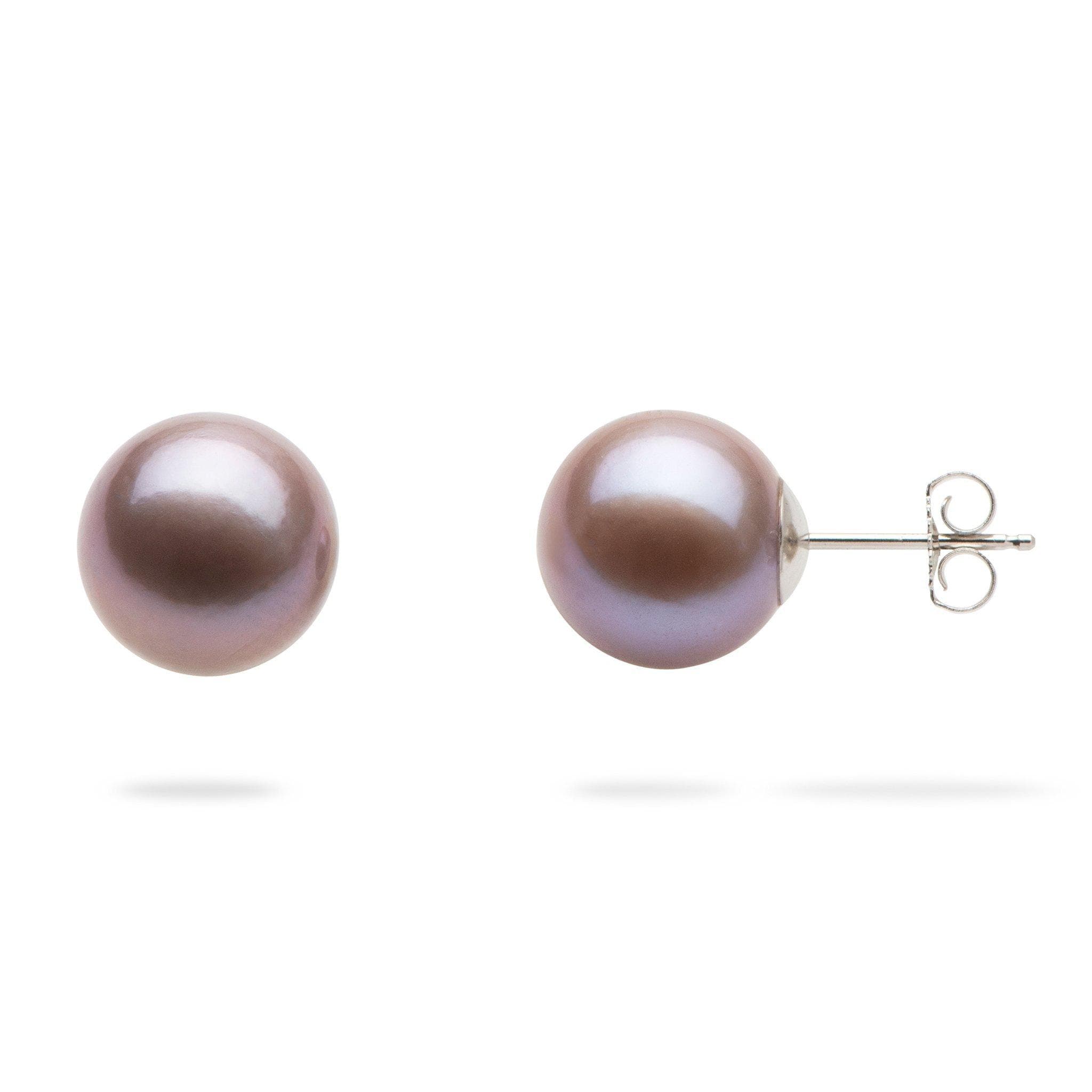Lilac Freshwater Pearl Earrings in White Gold - 10-11mm