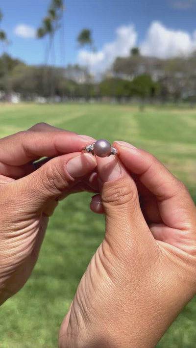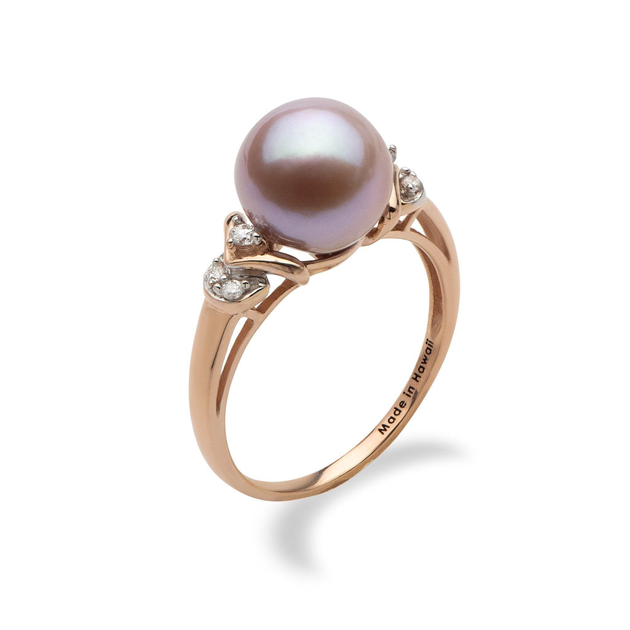Lilac Freshwater Pearl Ring in Rose Gold with Diamonds - 9-10mm