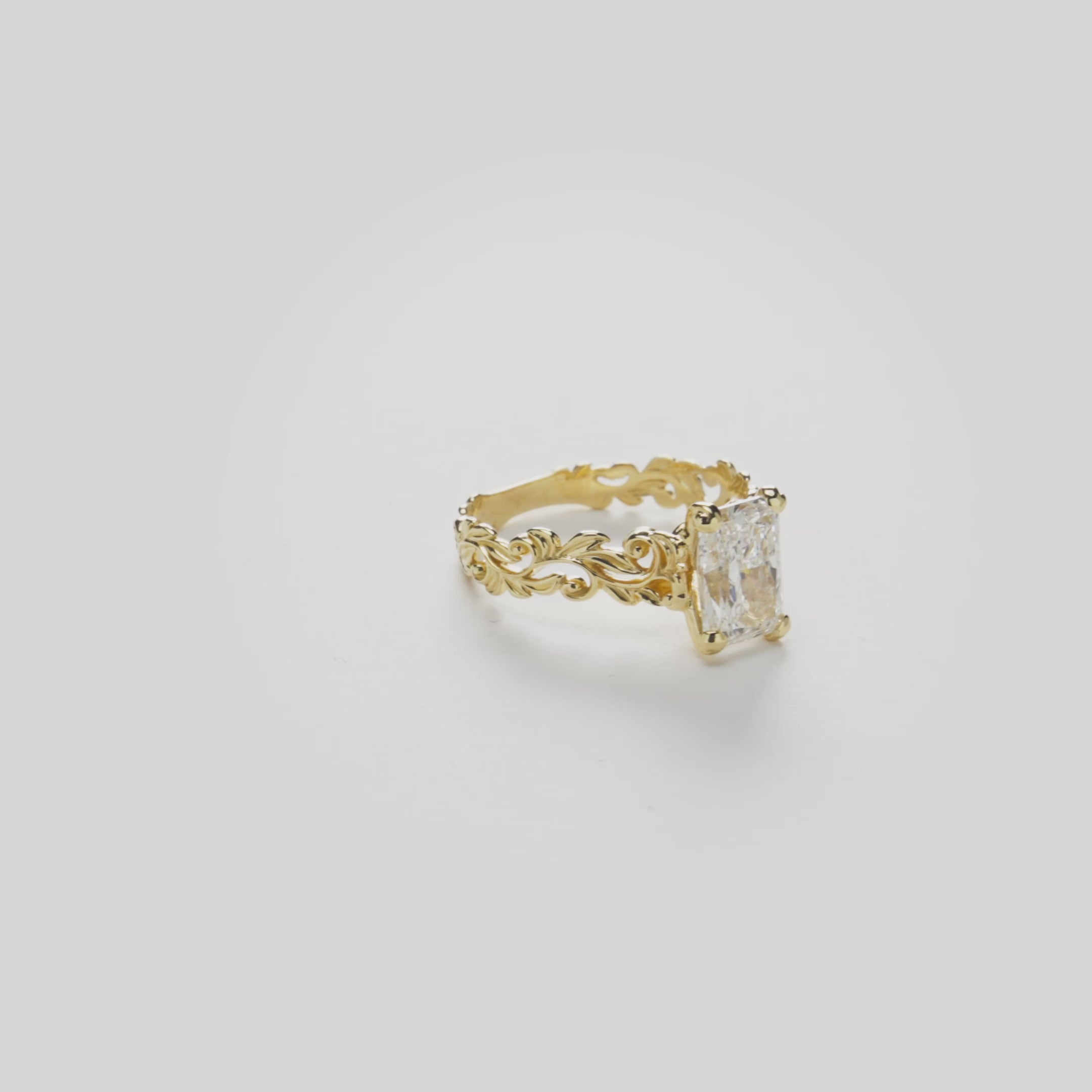 The royal beauty of the Living Heirloom Engagement Ring is undeniable. Elegant hāpu'u fern tips and vines of royal maile create its timeless scrollwork, embodying love, honor, respect, and new beginnings. The 2.01-carat radiant solitaire lab-grown diamond completes the exquisite design with stunning sparkle at every turn.