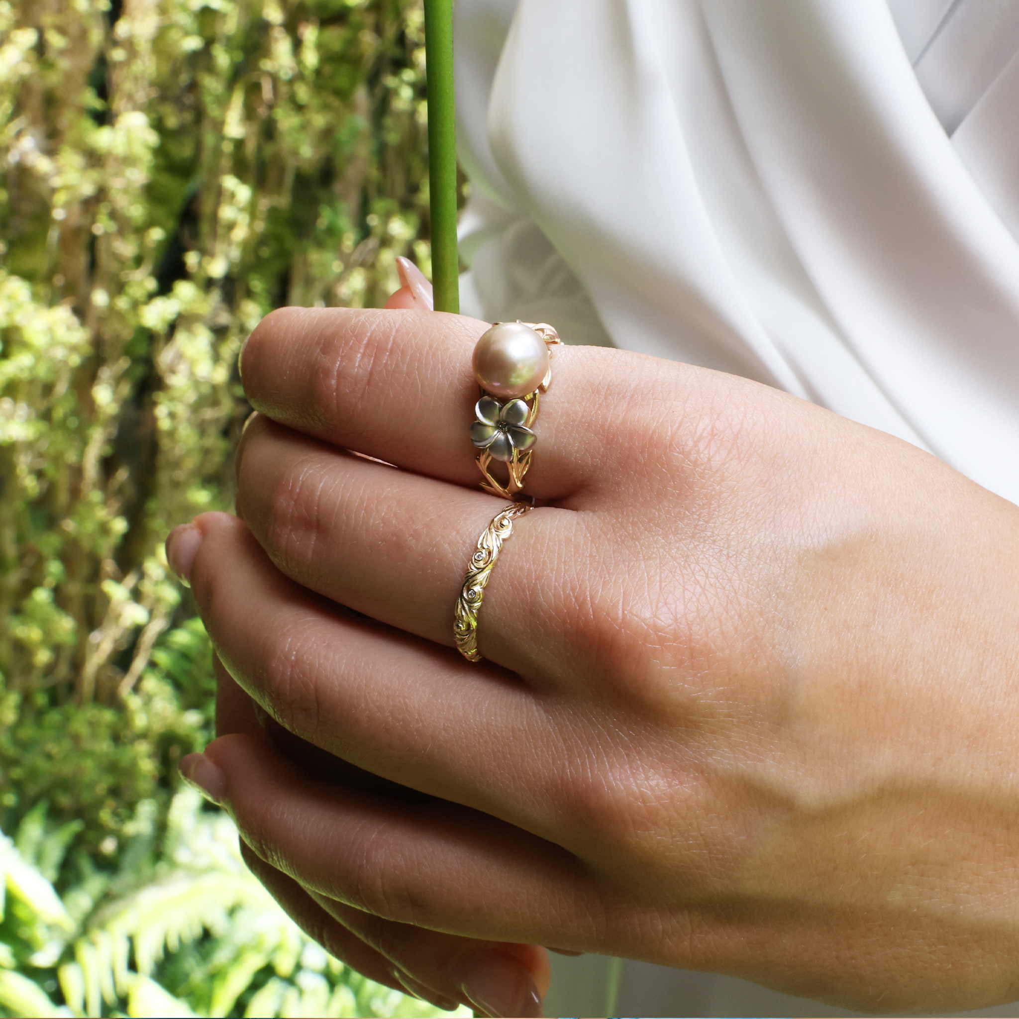 The Living Heirloom® Collection brings Hawaiian Heirloom jewelry to life. Uncurling hāpu'u fern tips and vines of royal maile, wrapped intimately as one, embodying love, honor, respect, and new beginnings.