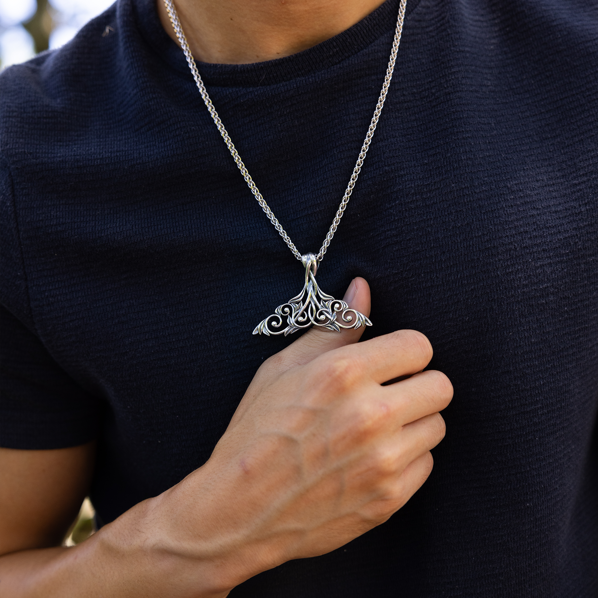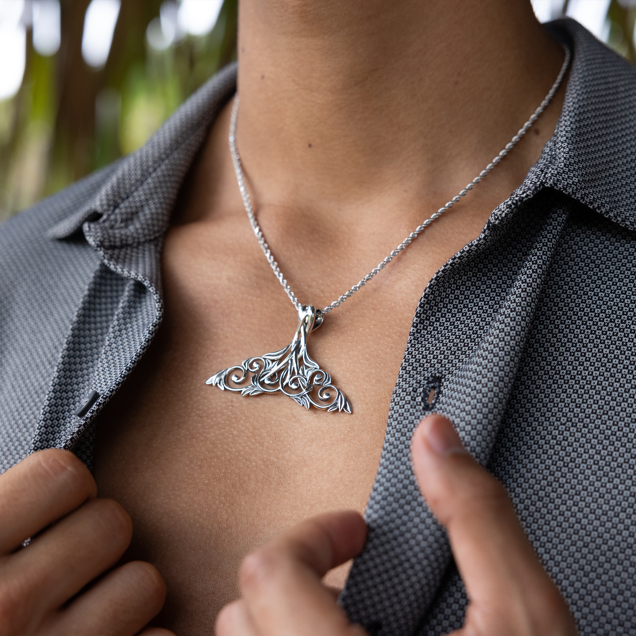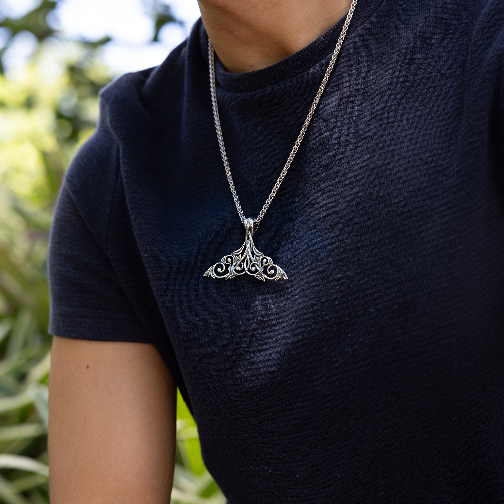 Living Heirloom Whale Tail Pendant in Sterling Silver - 42mm